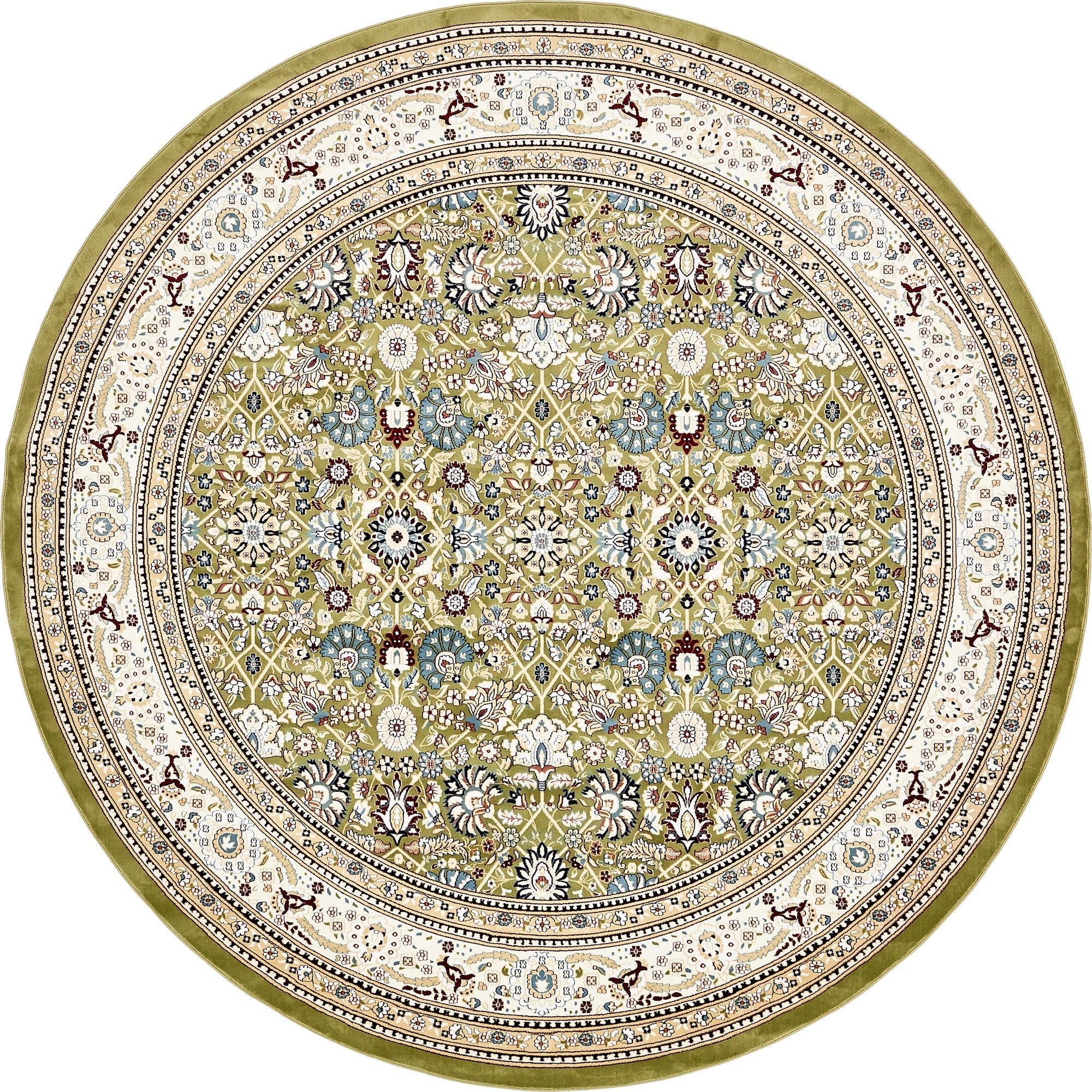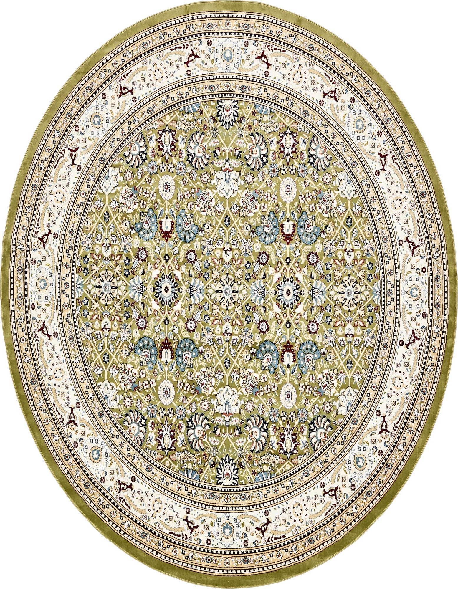Primary color is Green. Colors in this rug include: Green, Blue, Burgundy, Cream, Ivory, Navy Blue, Plum Red, Tan.