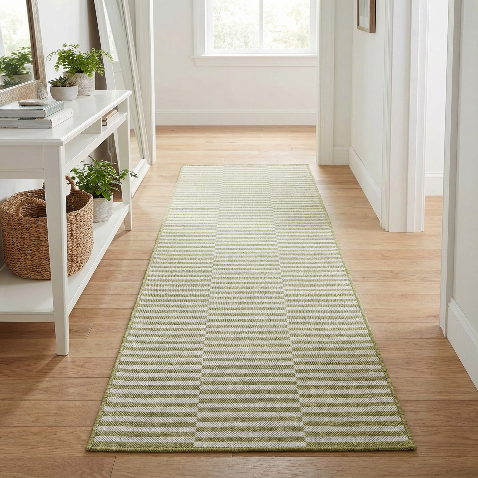 2' 7 x 10' Washable Striped Indoor / Outdoor Runner Rug