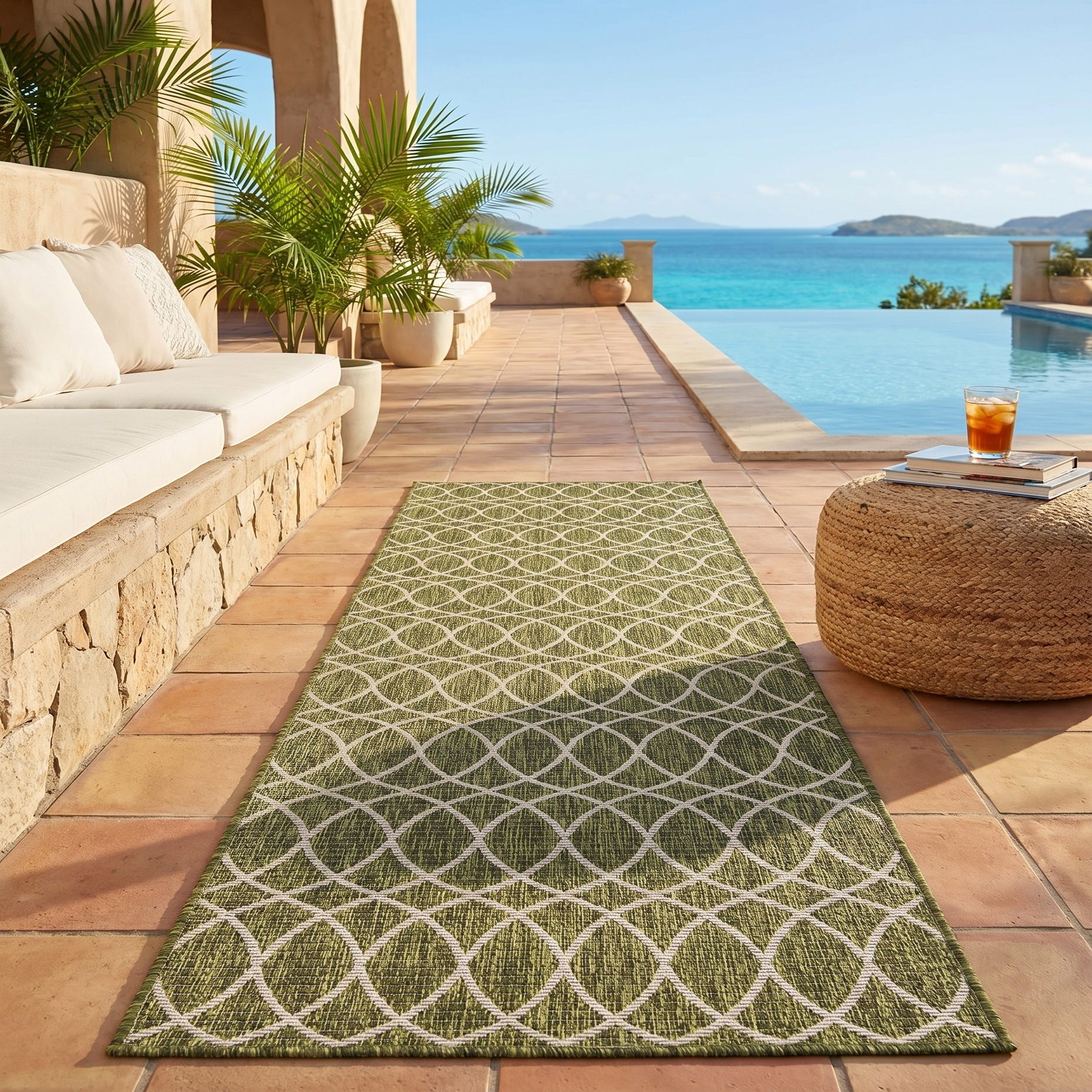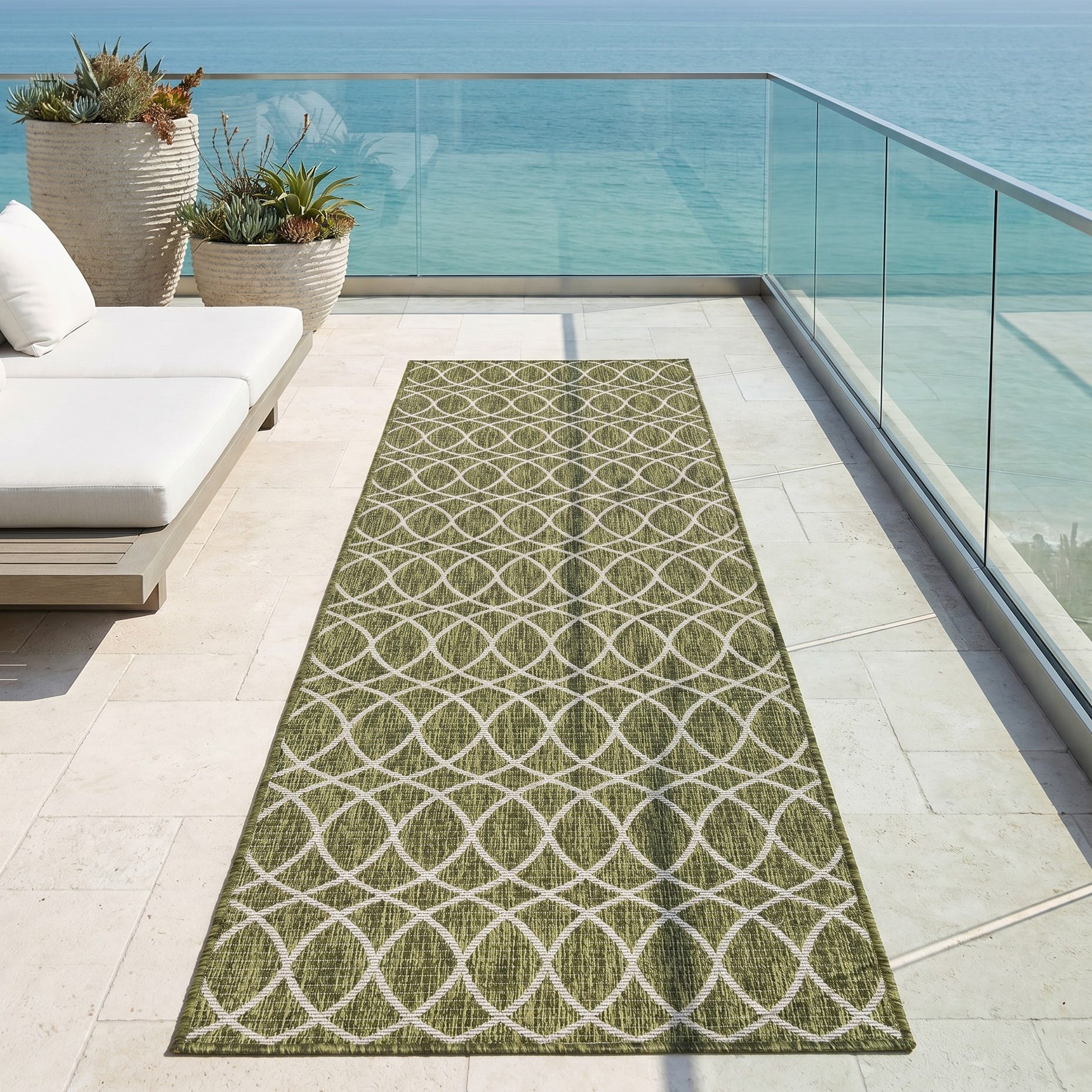 2' 7 x 10' Easy-Clean Trellis Indoor / Outdoor Runner Rug