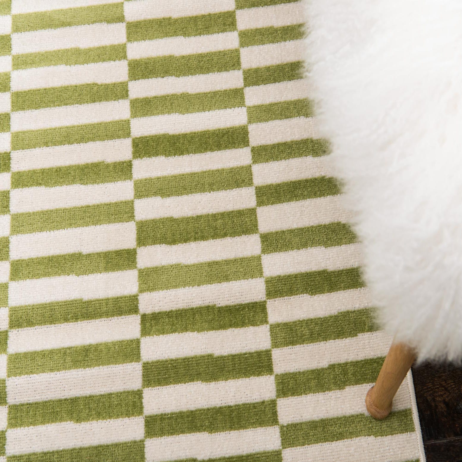 Primary color is Green. Colors in this rug include: Green, Ivory.