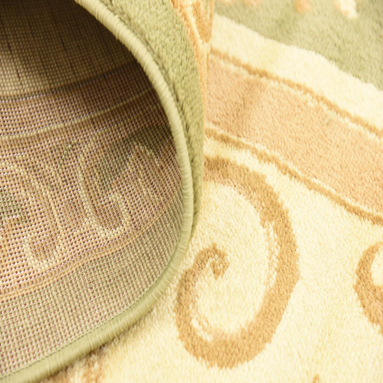 Primary color is Green. Colors in this rug include: Green, Brown, Cream, Tan, Red, Rust Red.
