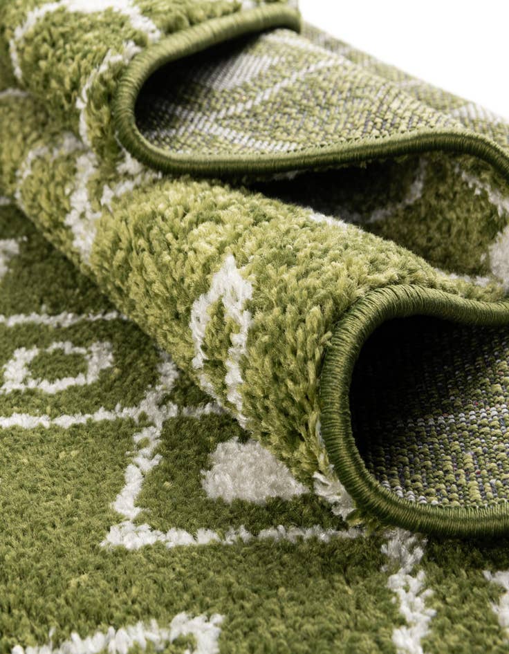 Primary color is Green. Colors in this rug include: Green, Ivory.