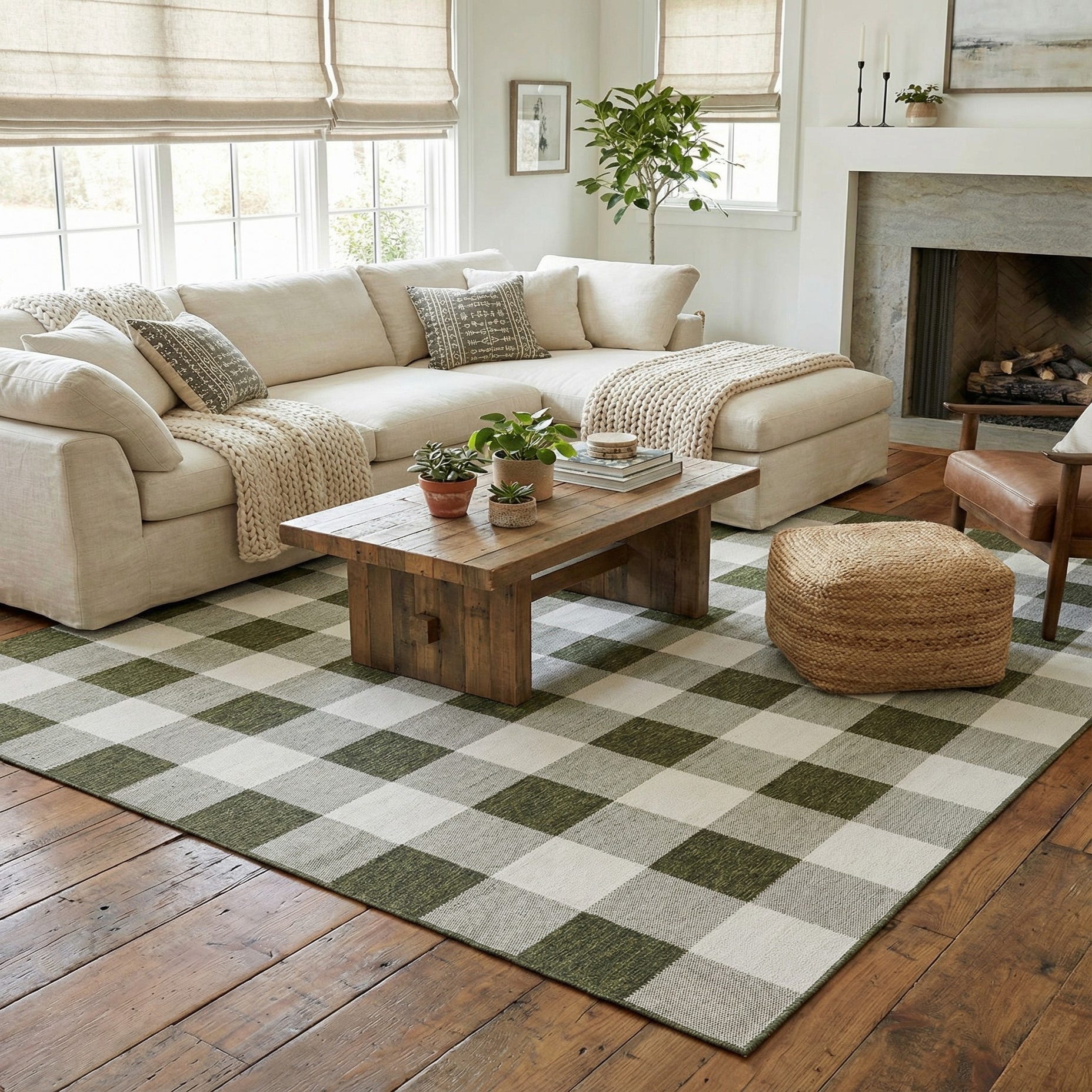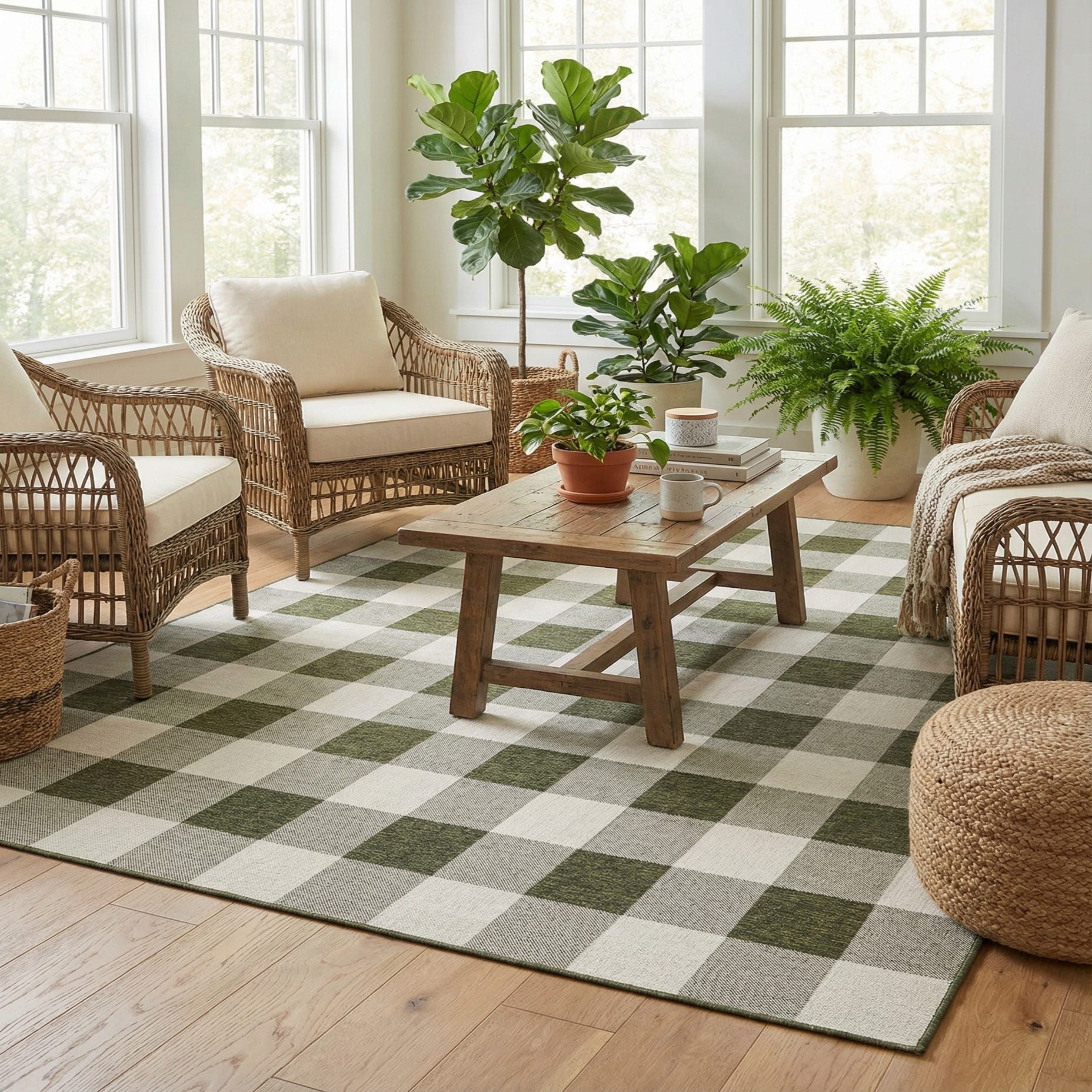 10' x 10' Washable Checkered Indoor / Outdoor Square Rug