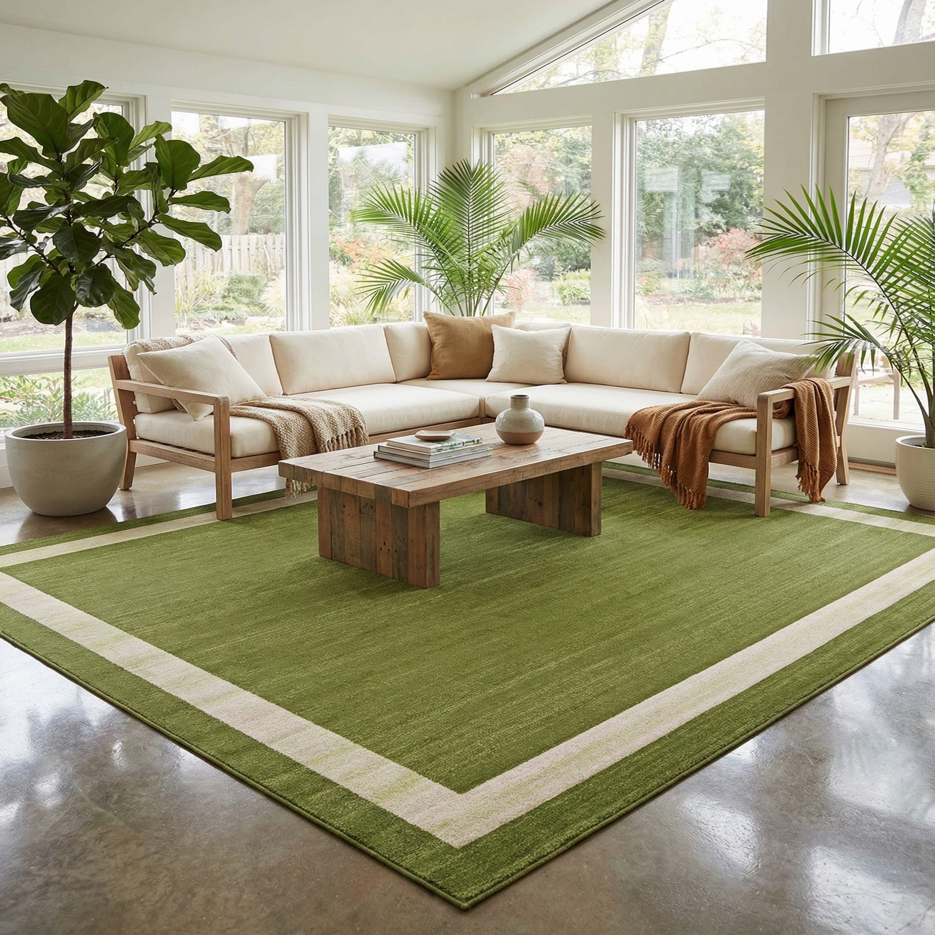 Primary color is Green. Colors in this rug include: Green, Ivory.