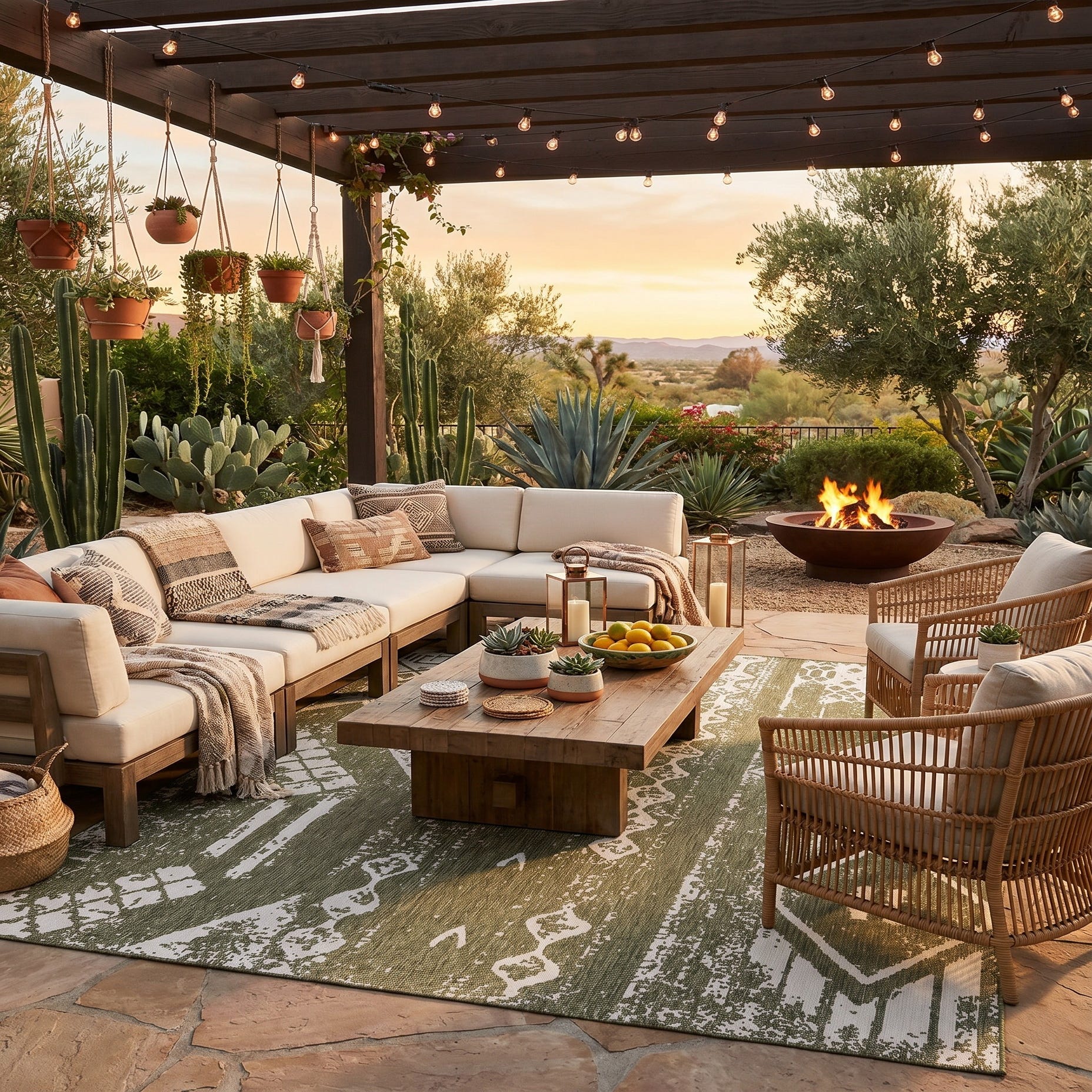 10' x 13' Easy-Clean Bohemian Indoor / Outdoor Rug