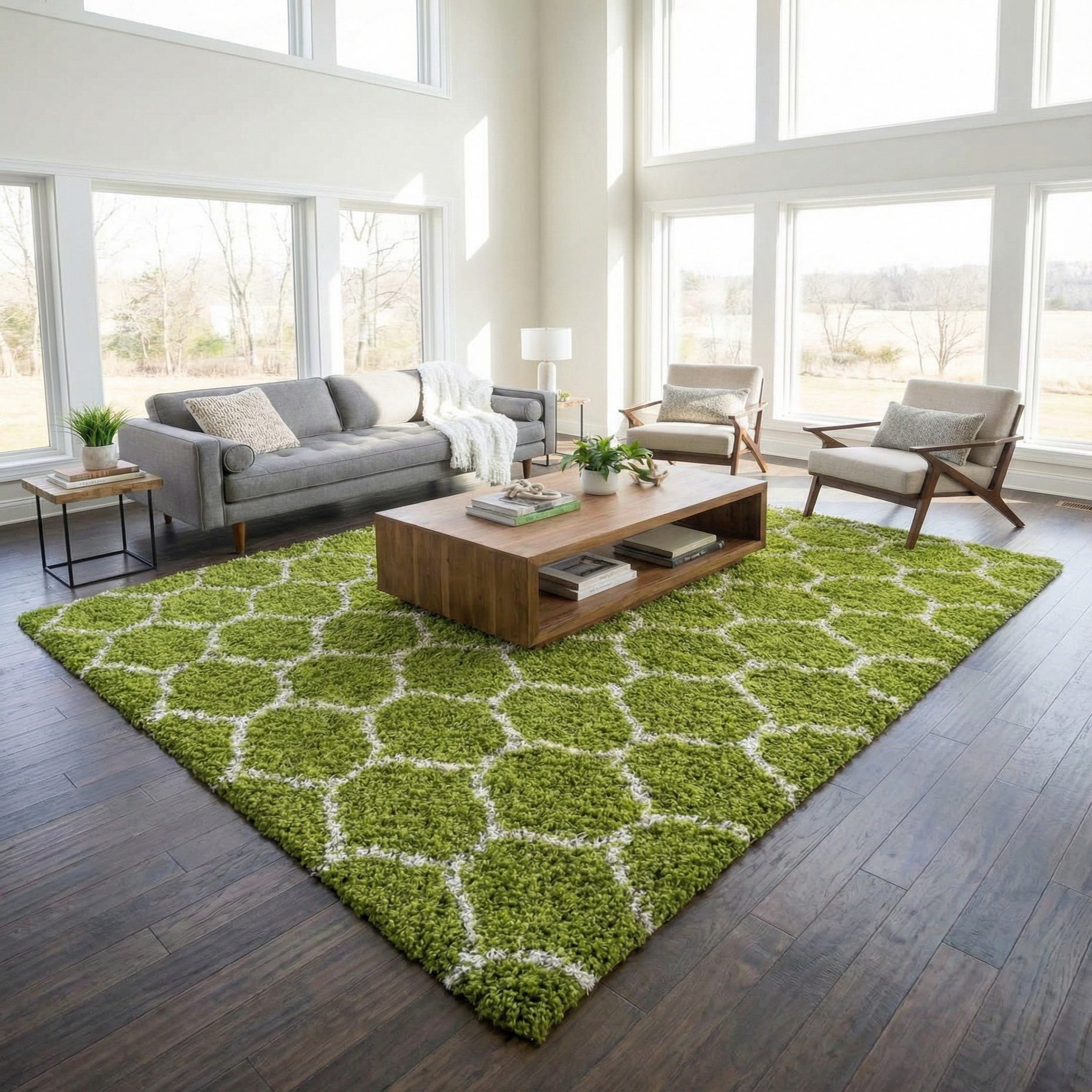 Primary color is Green. Colors in this rug include: Green, Ivory.
