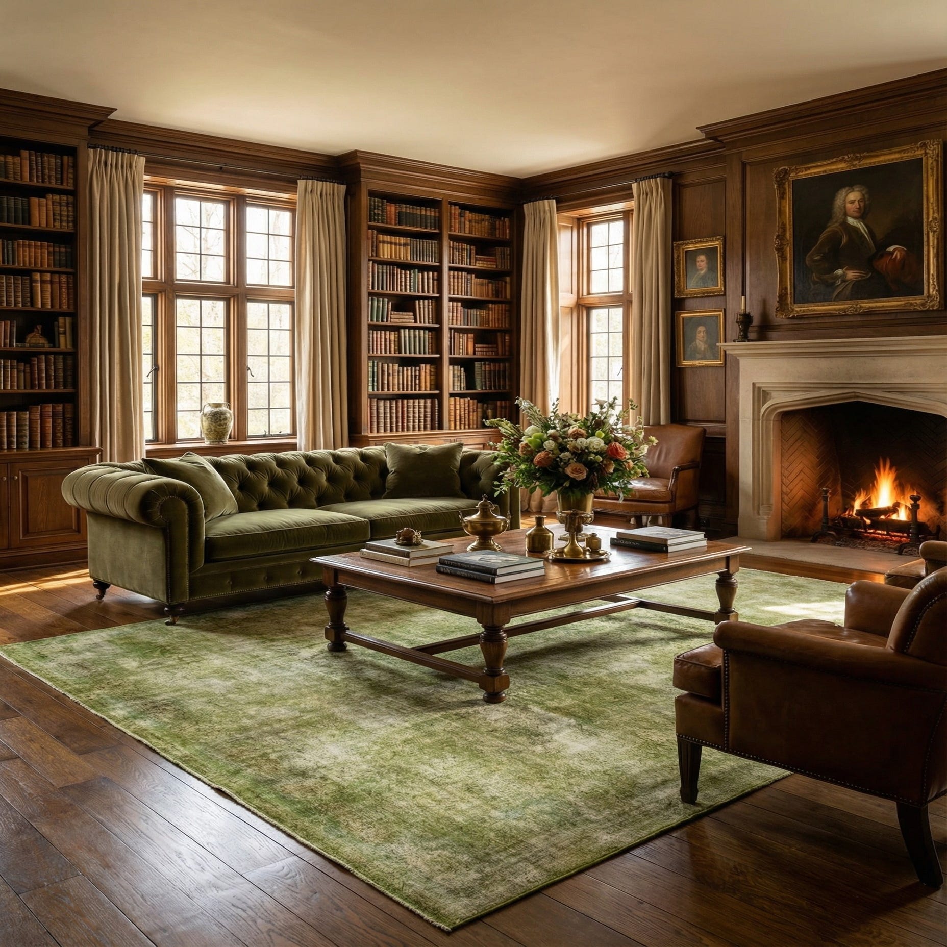 Primary color is Green. Colors in this rug include: Green, Beige.