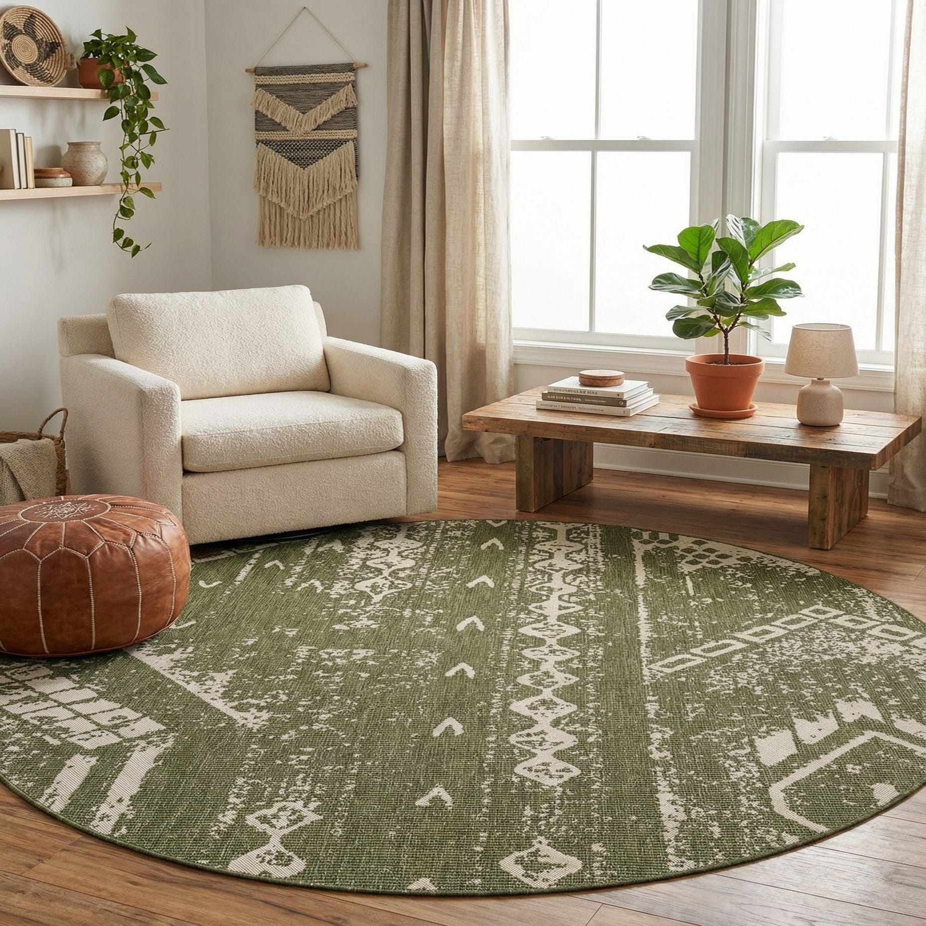10' 8 x 10' 8 Washable Bohemian Indoor / Outdoor Round Rug