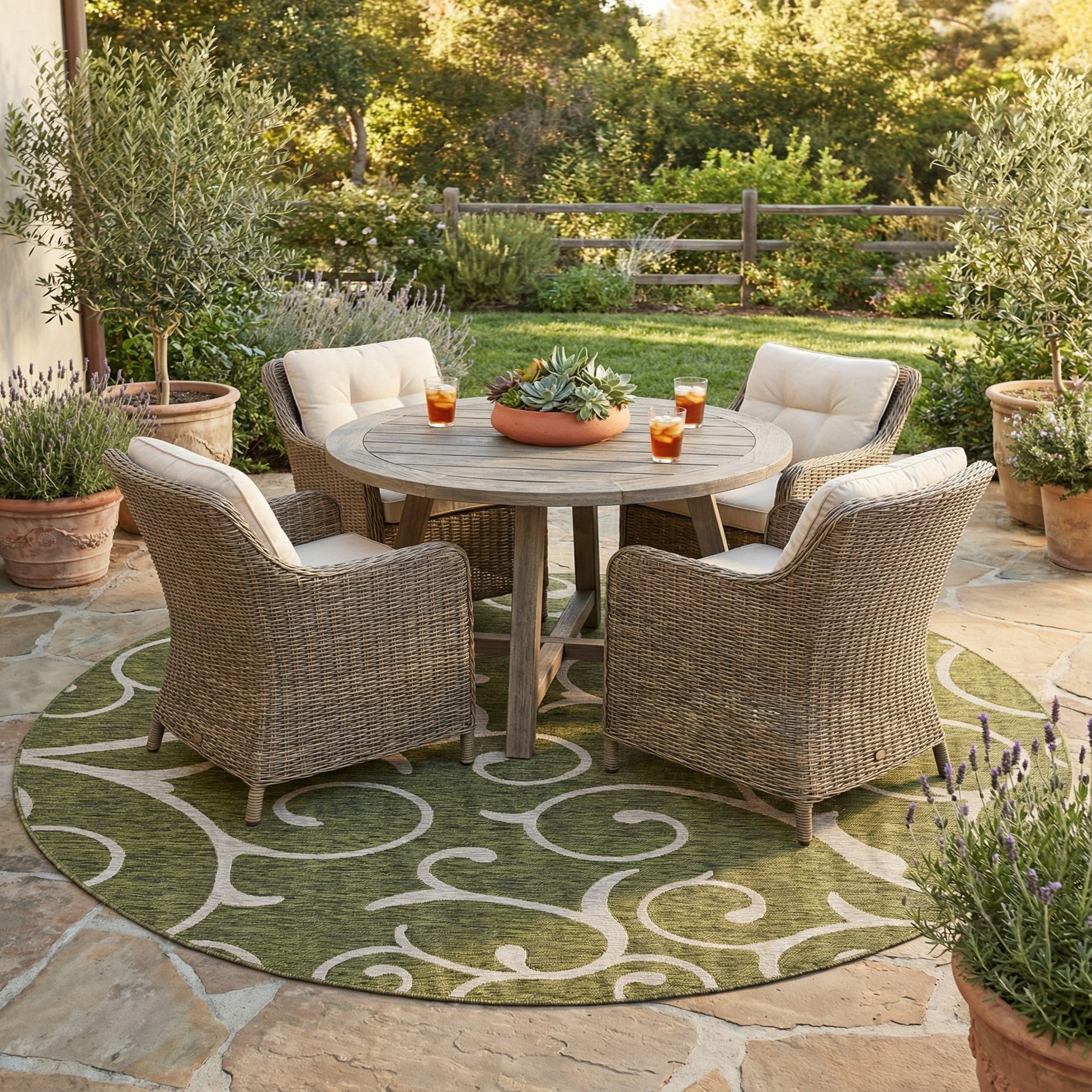 10' 8 x 10' 8 Washable Botanical Indoor / Outdoor Round Rug
