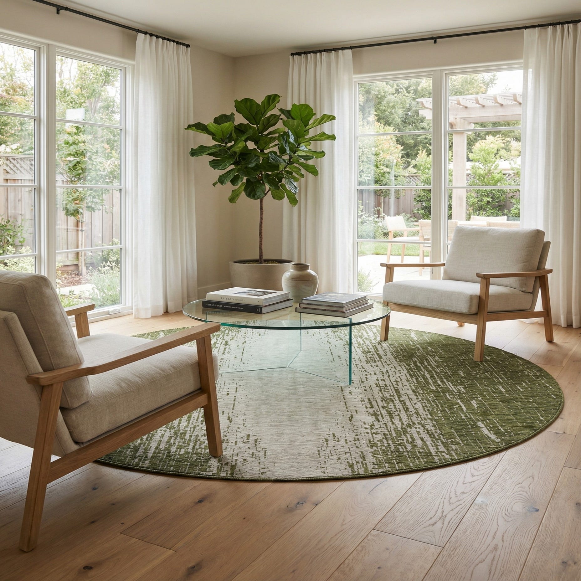 10' 8 x 10' 8 Washable Modern Indoor / Outdoor Round Rug