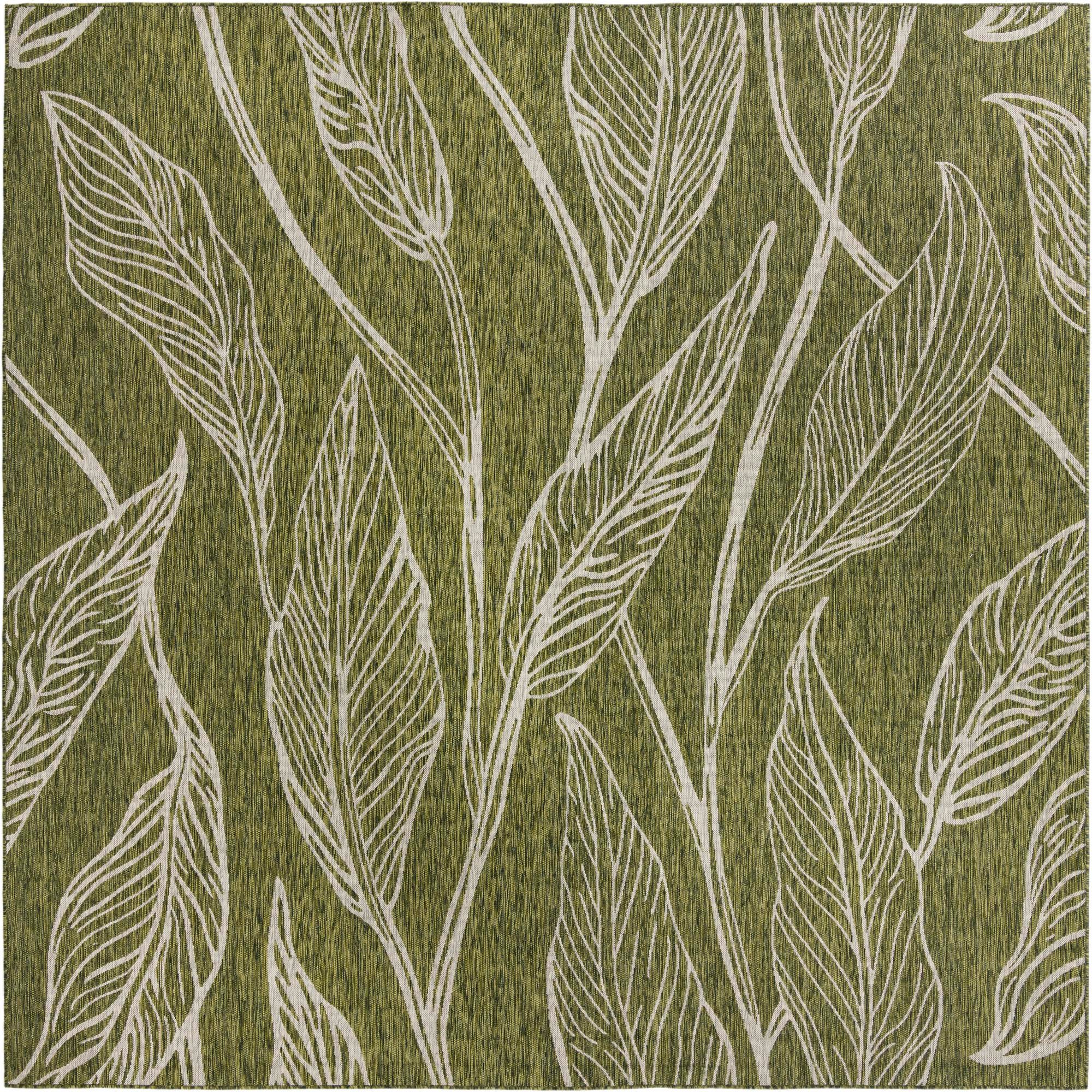 10' 8 x 10' 8 Washable Botanical Indoor / Outdoor Square Rug