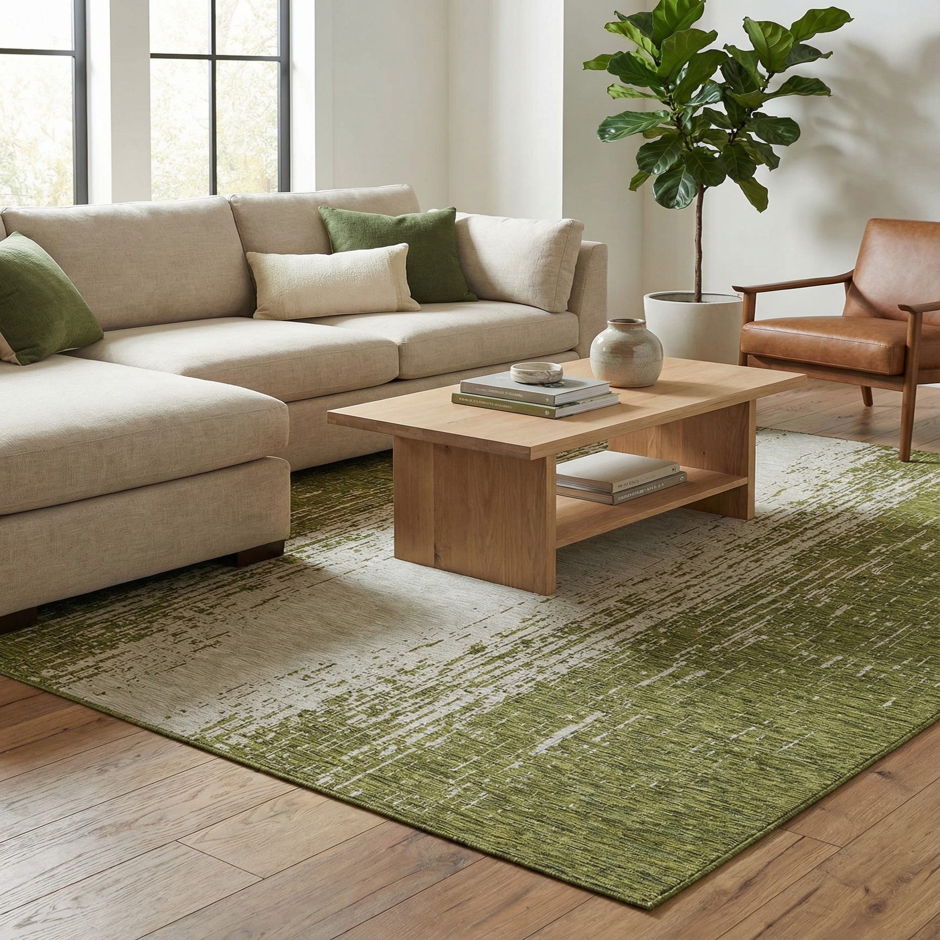 Primary color is Green. Colors in this rug include: Green, Ivory.