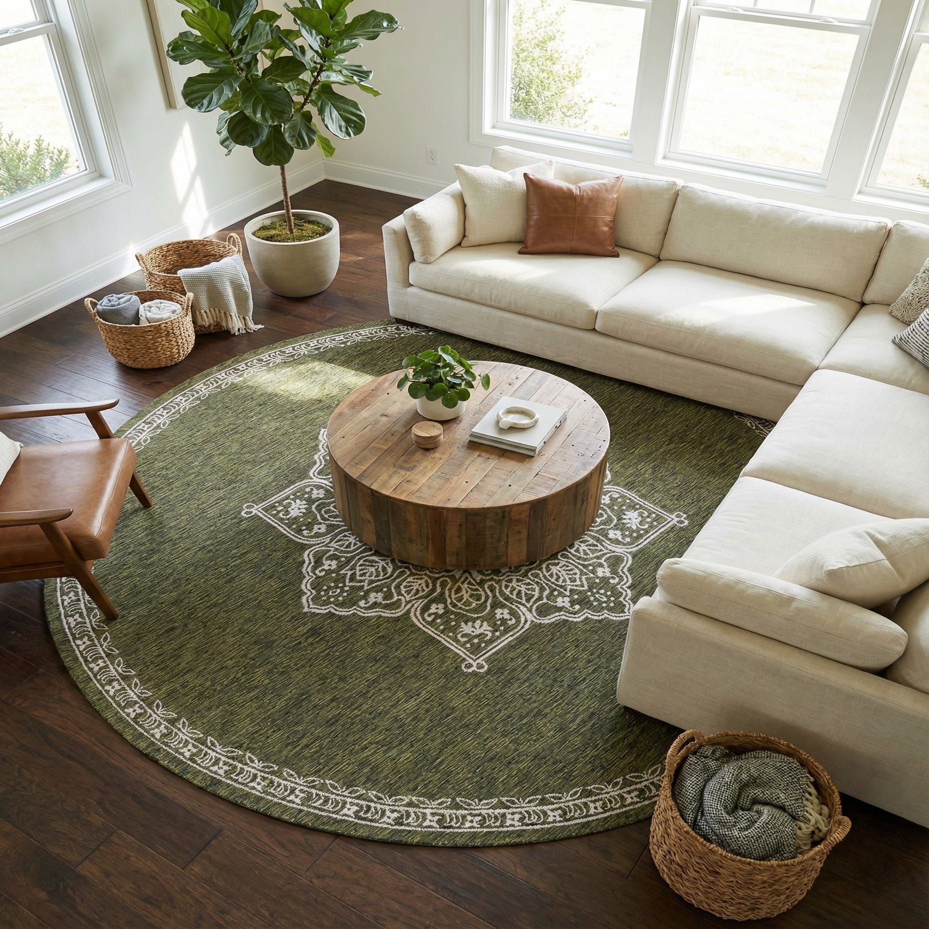 12' x 12' Washable Traditional Indoor / Outdoor Round Rug