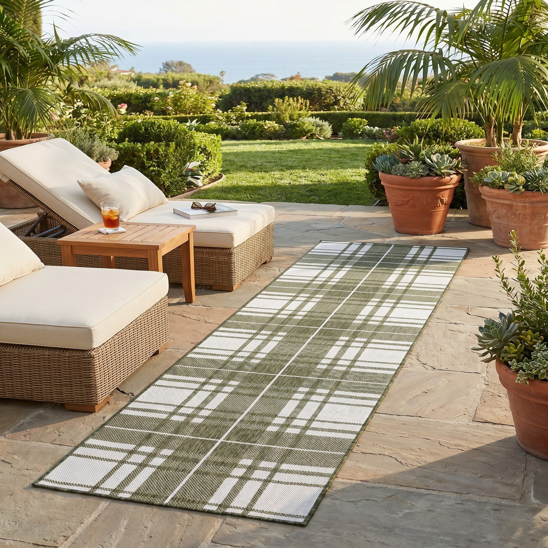 2' 7 x 12' Easy-Clean Checkered Indoor / Outdoor Runner Rug