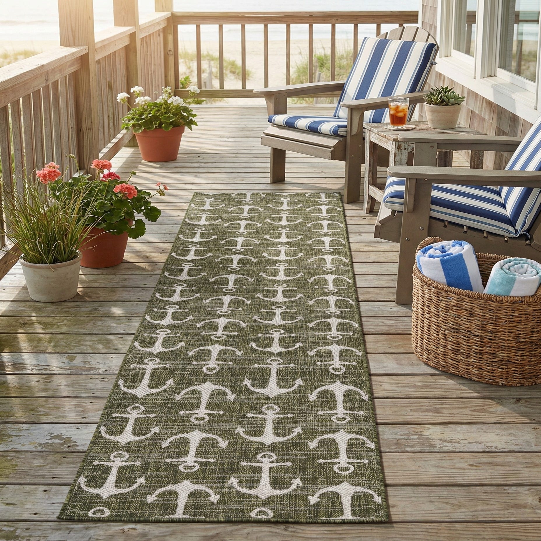 2' 7 x 12' Washable Coastal Indoor / Outdoor Runner Rug
