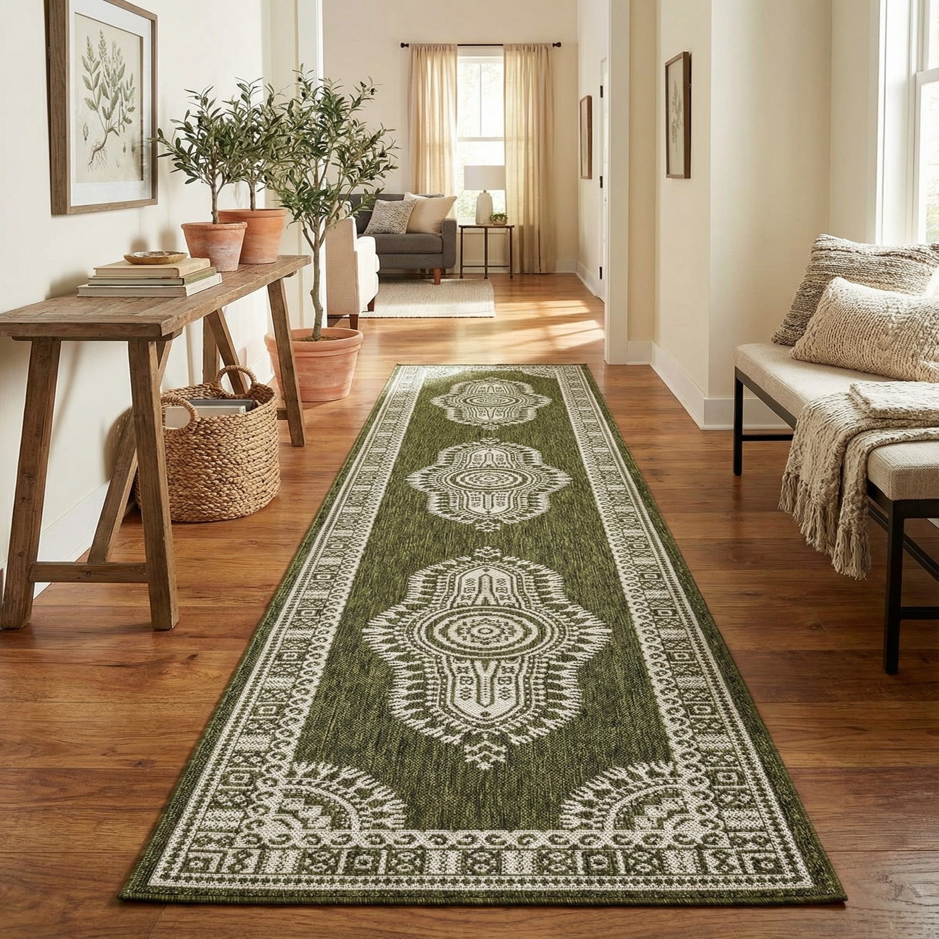 Detail image of 2' 7 x 12'  Washable Traditional Indoor / Outdoor Runner Rug