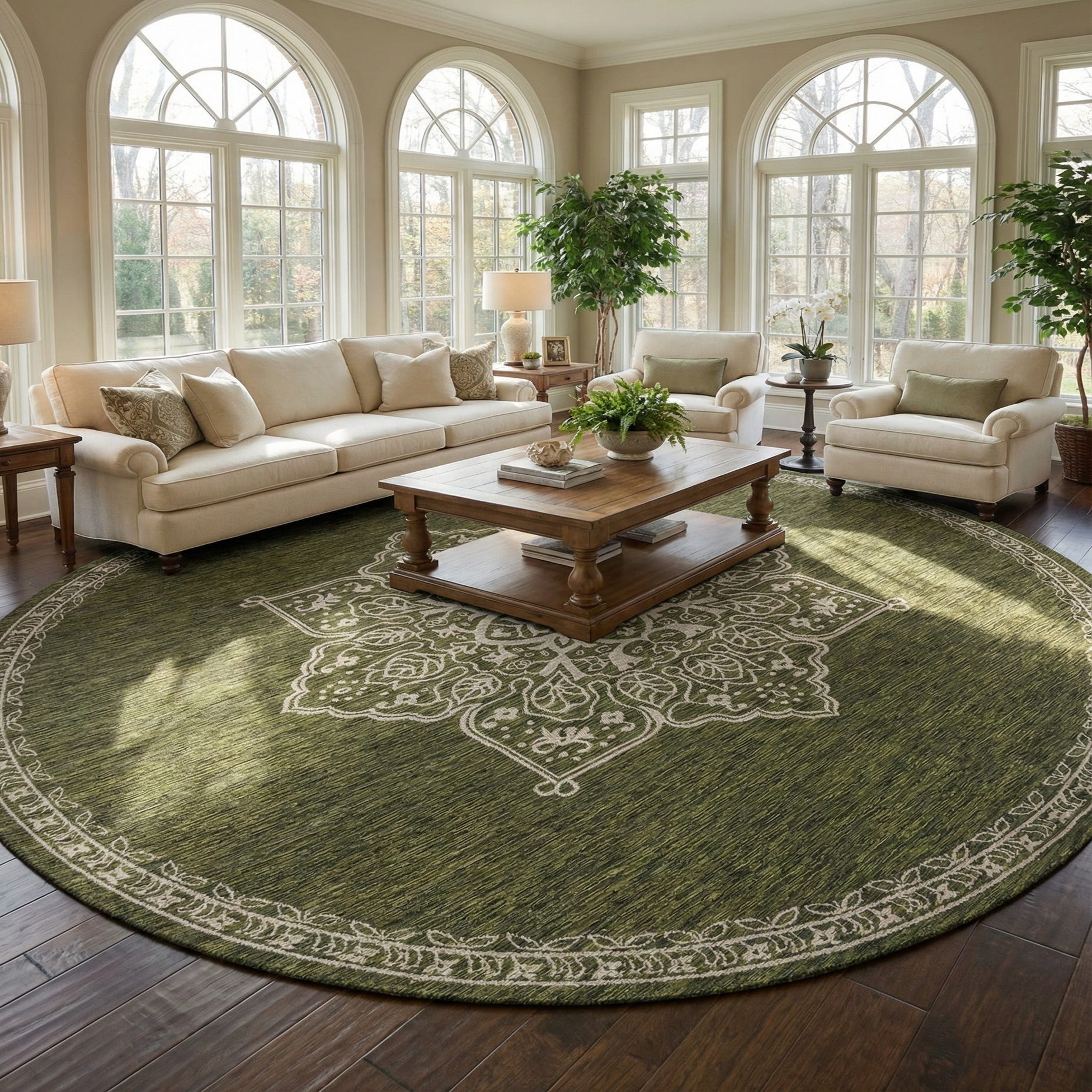 Primary image 13' x 13'  Washable Traditional Indoor / Outdoor Round Rug