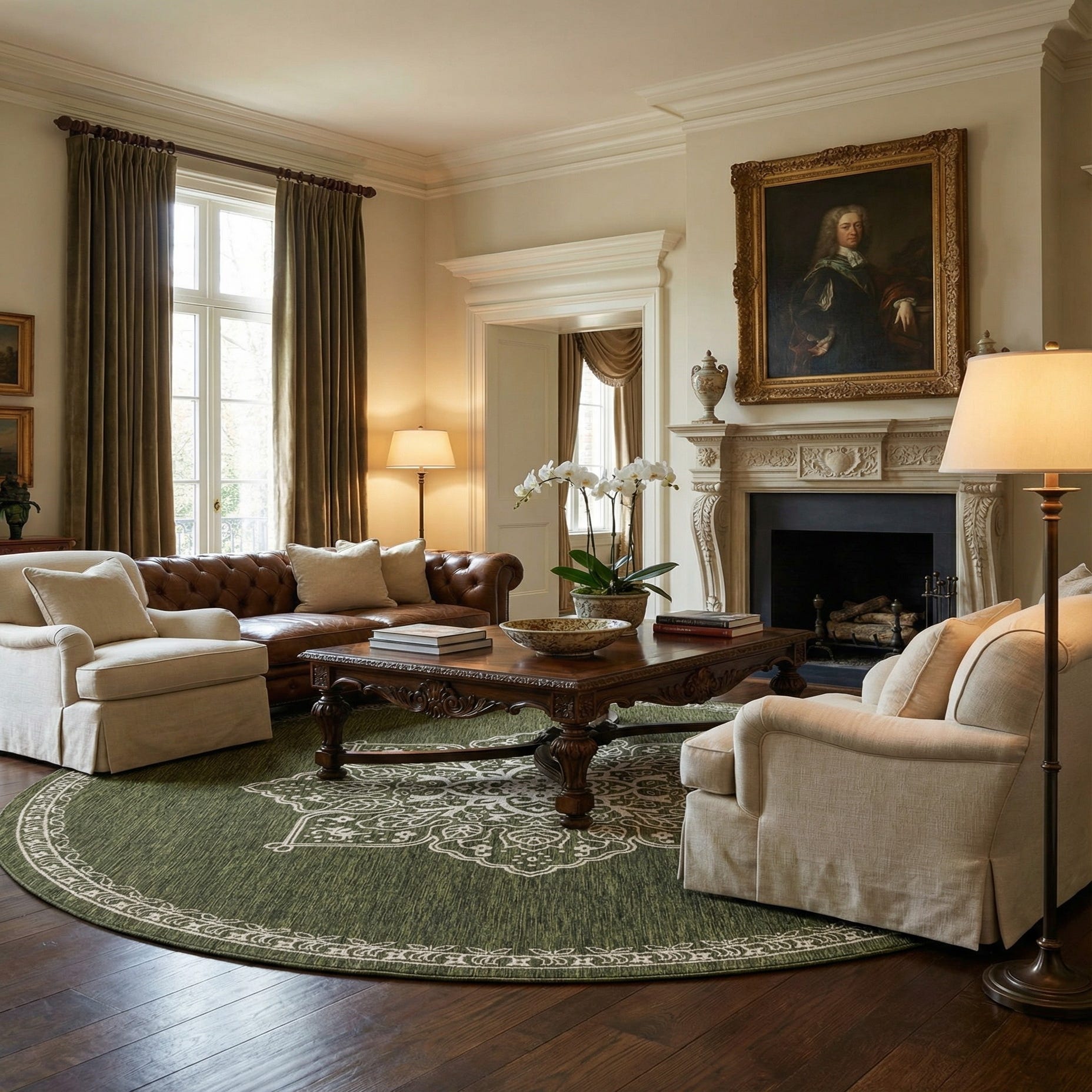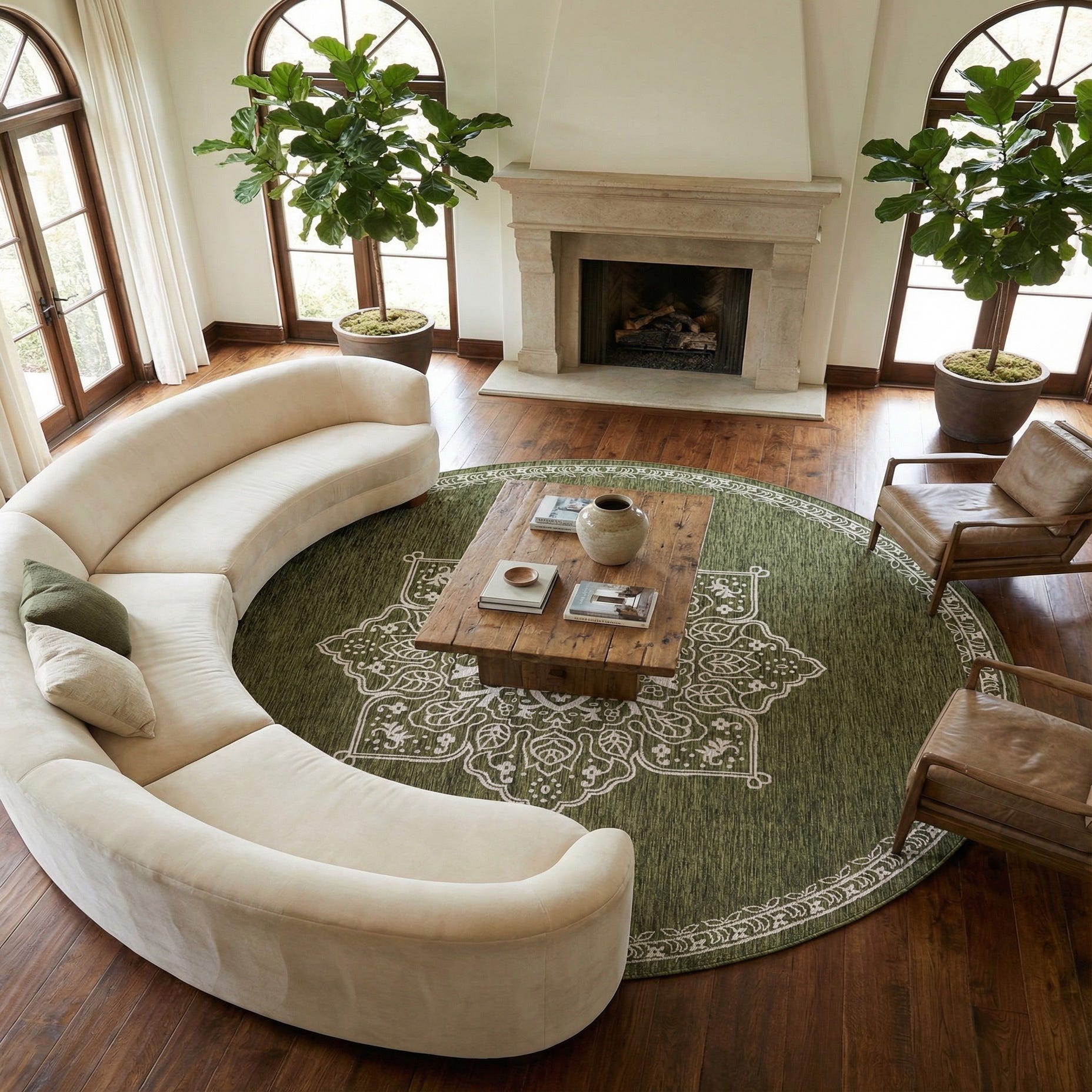 Primary image 13' x 13'  Washable Traditional Indoor / Outdoor Round Rug