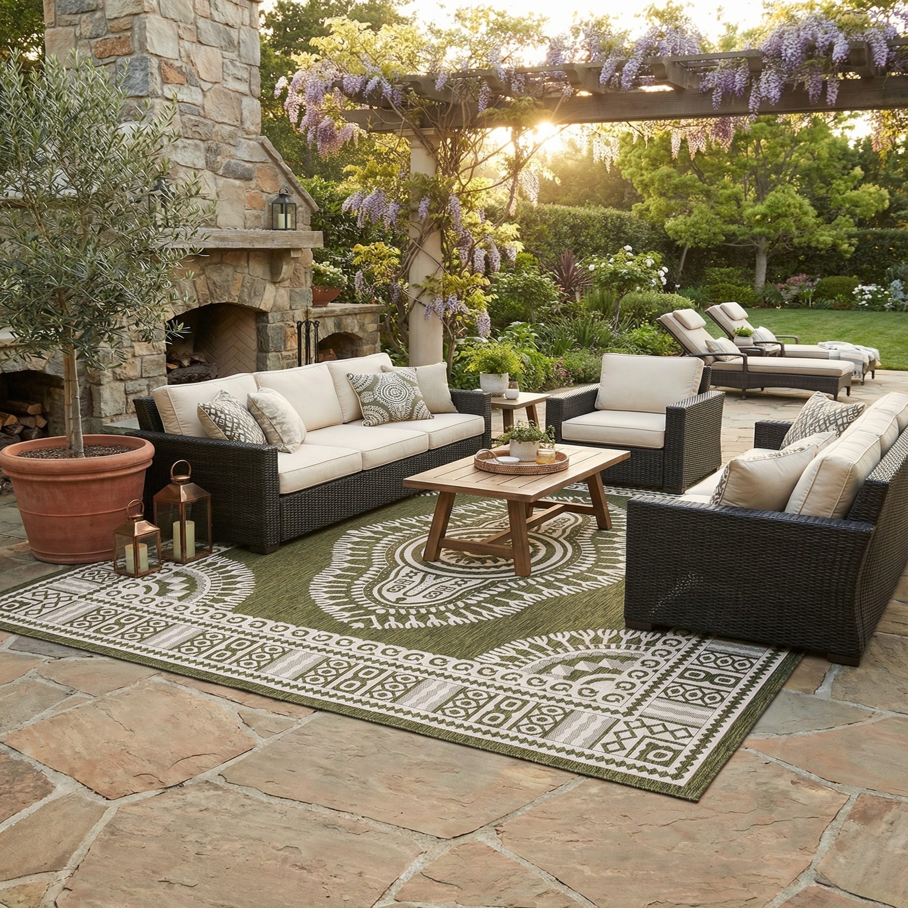 Detail image of 13' x 13'  Washable Traditional Indoor / Outdoor Square Rug