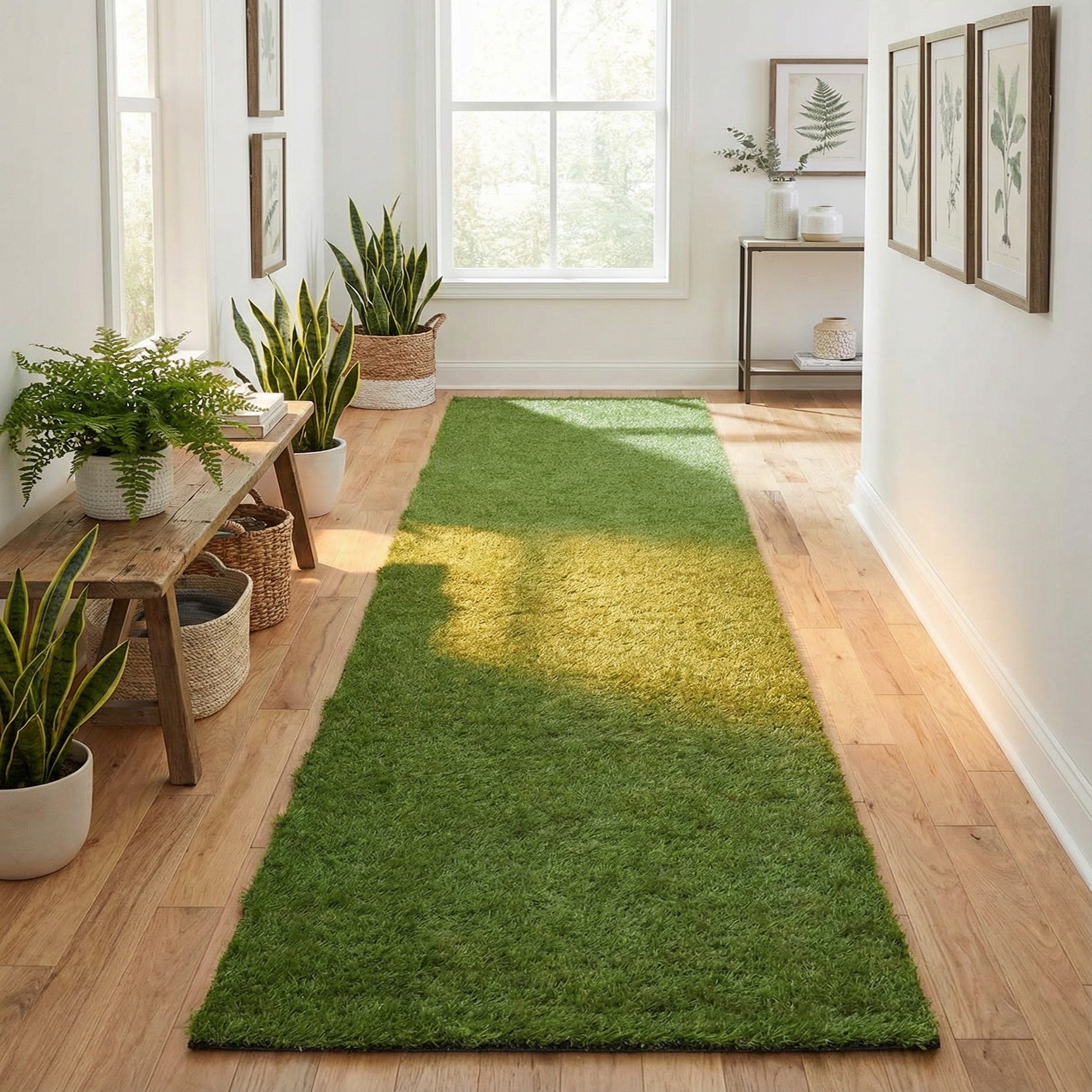 3' 3 x 16' 5 Washable Grass Indoor / Outdoor Runner Rug