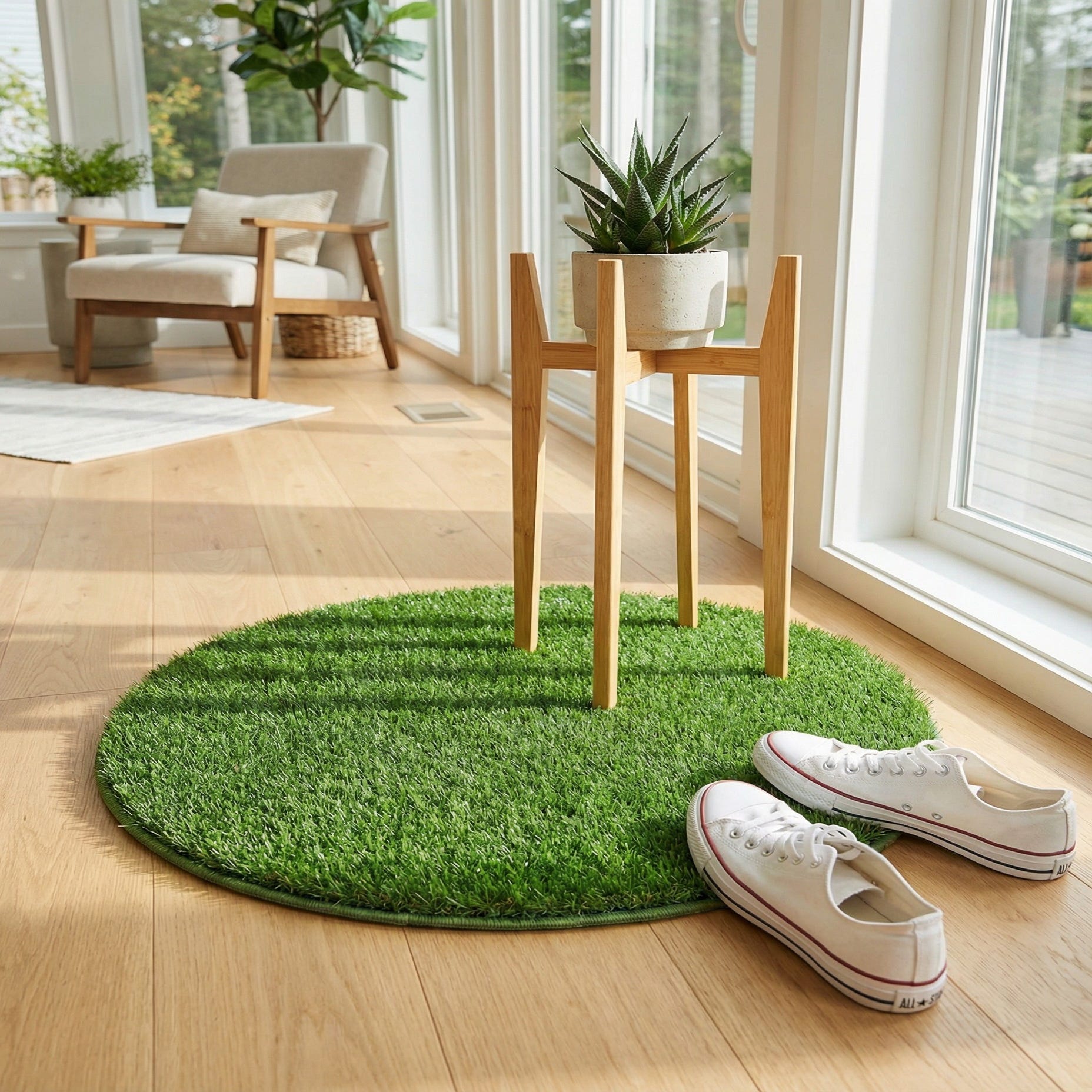 2' 2 x 2' 2 Washable Grass Indoor / Outdoor Round Rug
