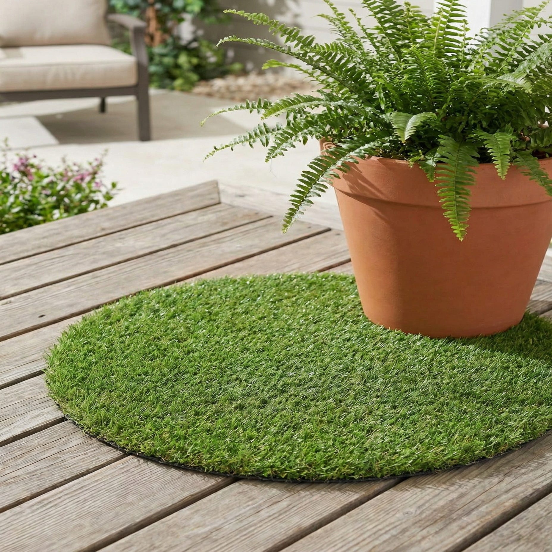 Detail image of 2' 2 x 2' 2  Washable Grass Indoor / Outdoor Round Rug