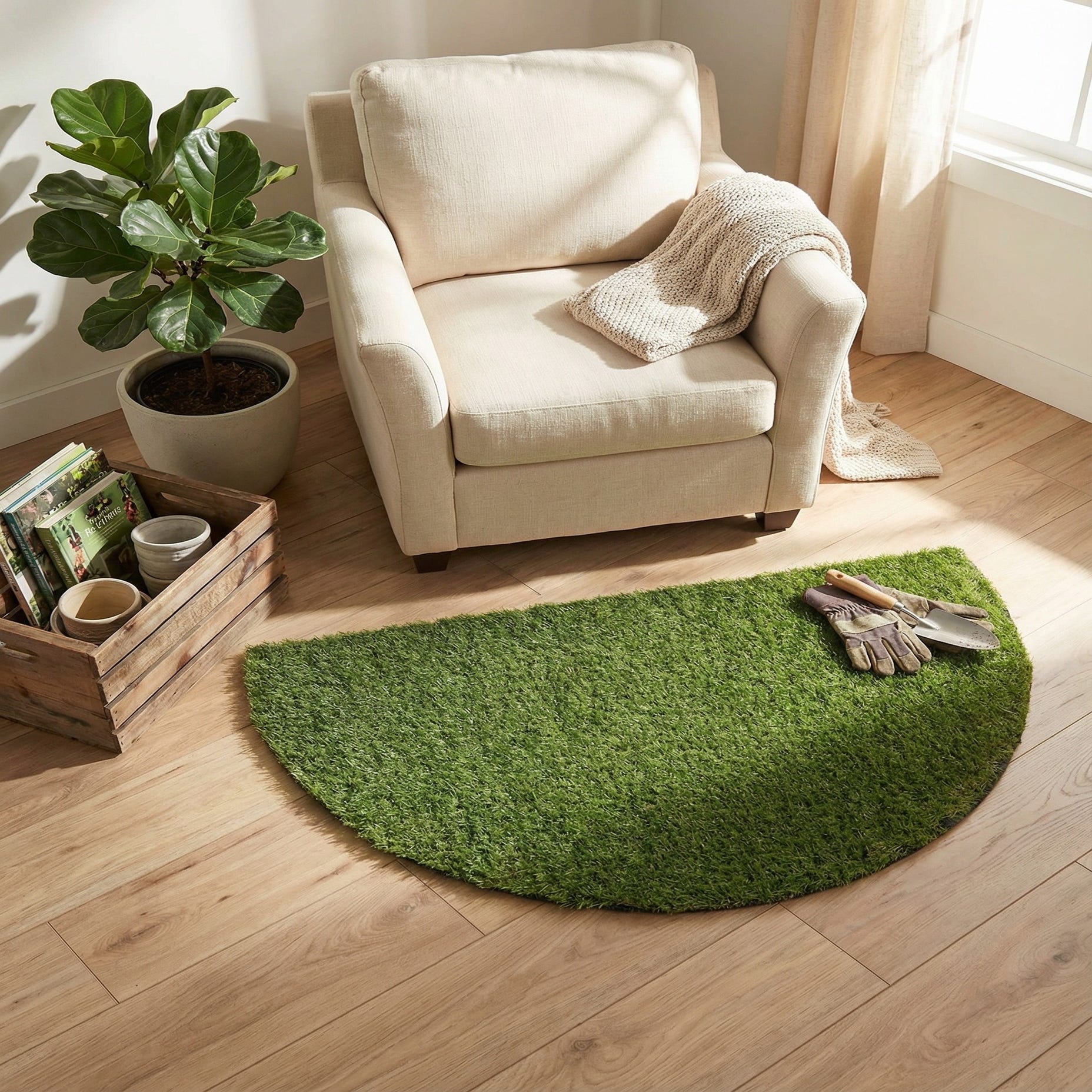 Detail image of 2' 2 x 3' 7  Washable Grass Indoor / Outdoor Hearth Rug