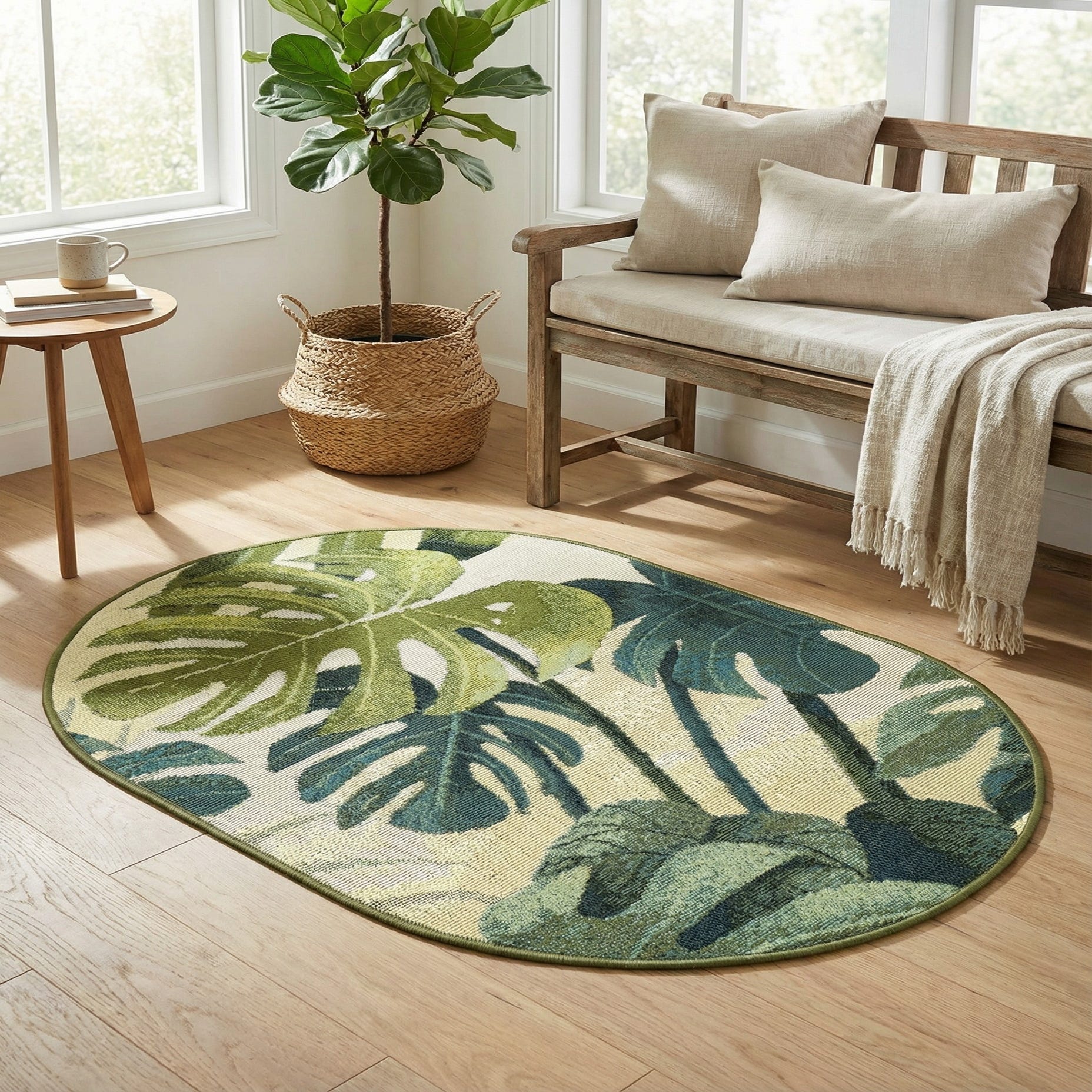 2' 2 x 3' Washable Botanical Indoor / Outdoor Oval Rug