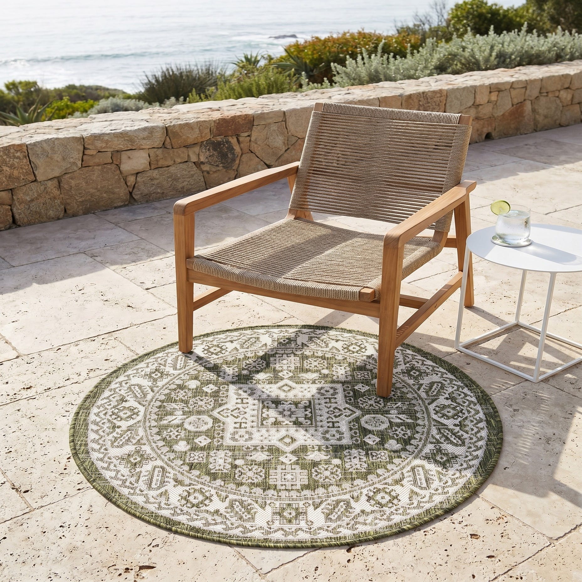 3' x 3' Easy-Clean Aztec Indoor / Outdoor Round Rug