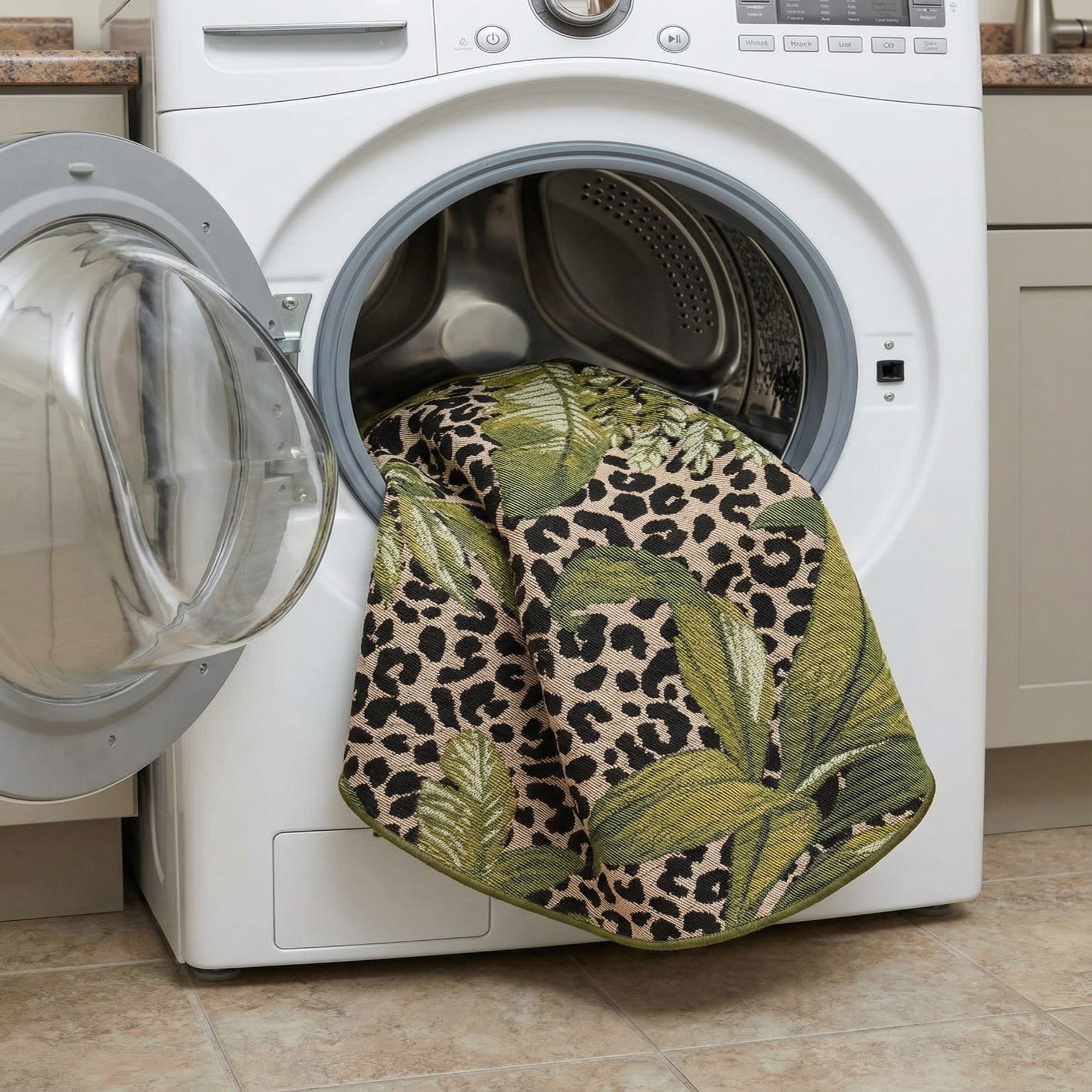 Detail image of 3' x 3'  Washable Botanical Indoor / Outdoor Round Rug