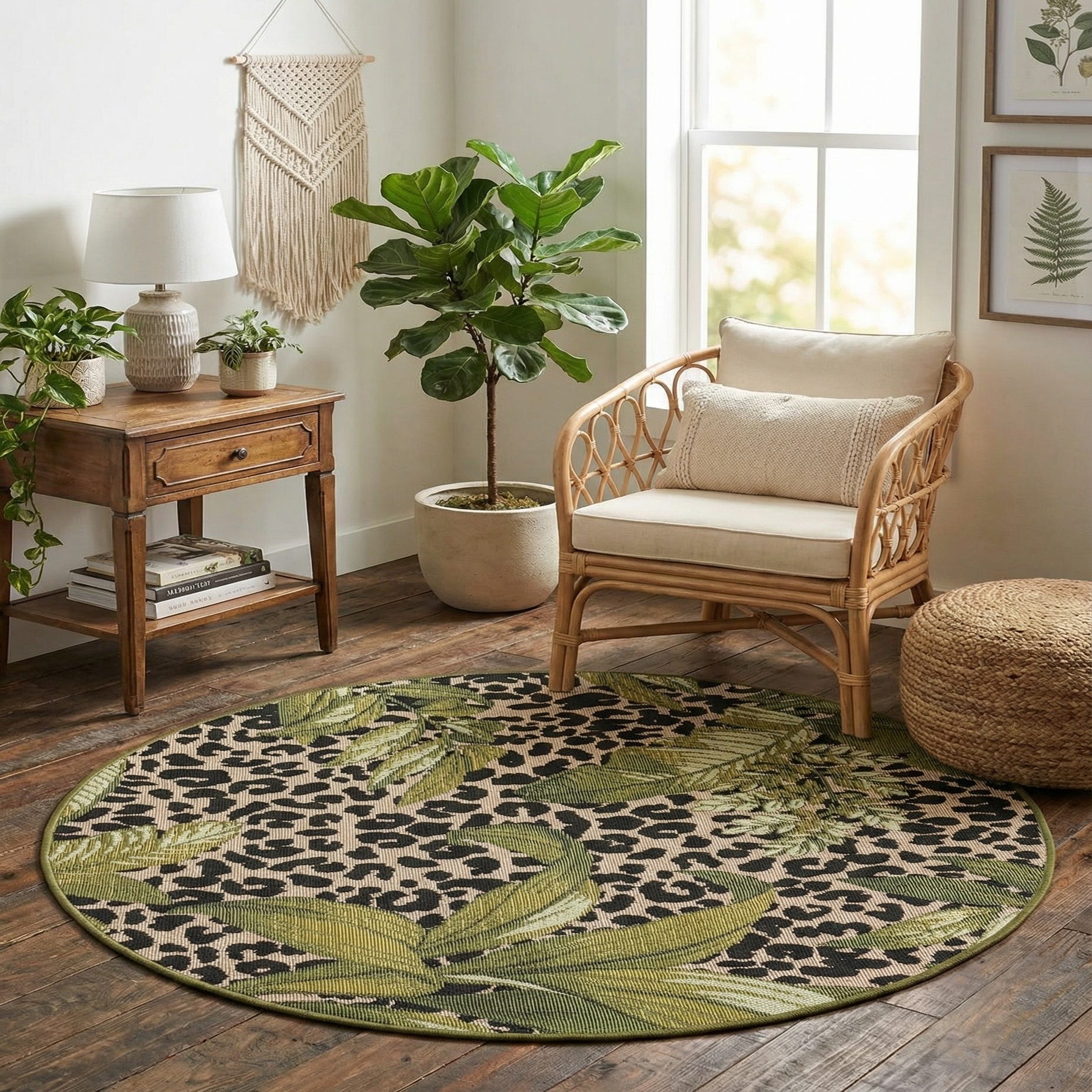 3' x 3' Washable Botanical Indoor / Outdoor Round Rug
