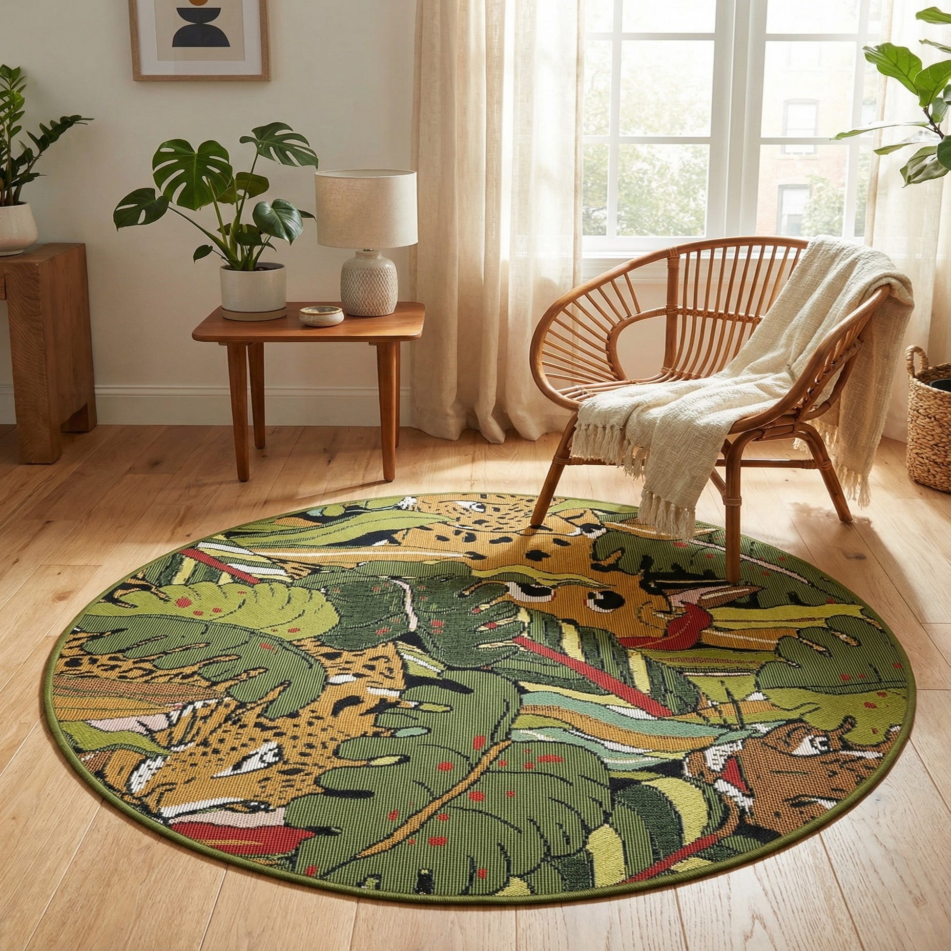 3' x 3' Washable Botanical Indoor / Outdoor Round Rug