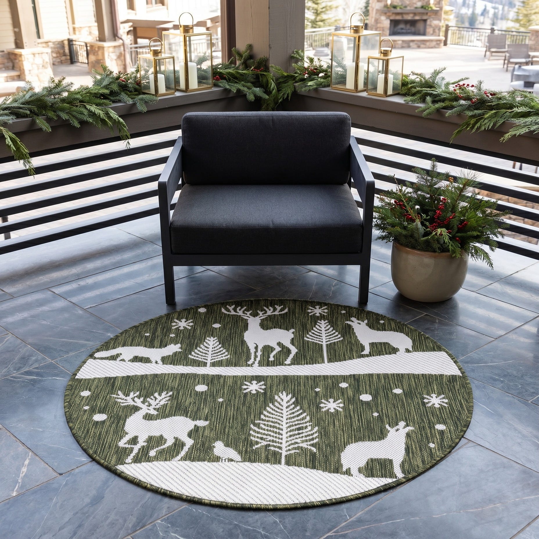 3' x 3' Easy-Clean Holiday Indoor / Outdoor Round Rug
