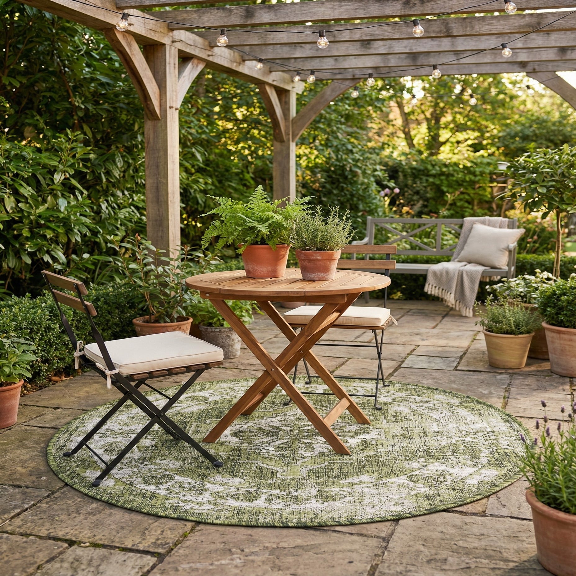 Detail image of 3' x 3'  Washable Traditional Indoor / Outdoor Round Rug