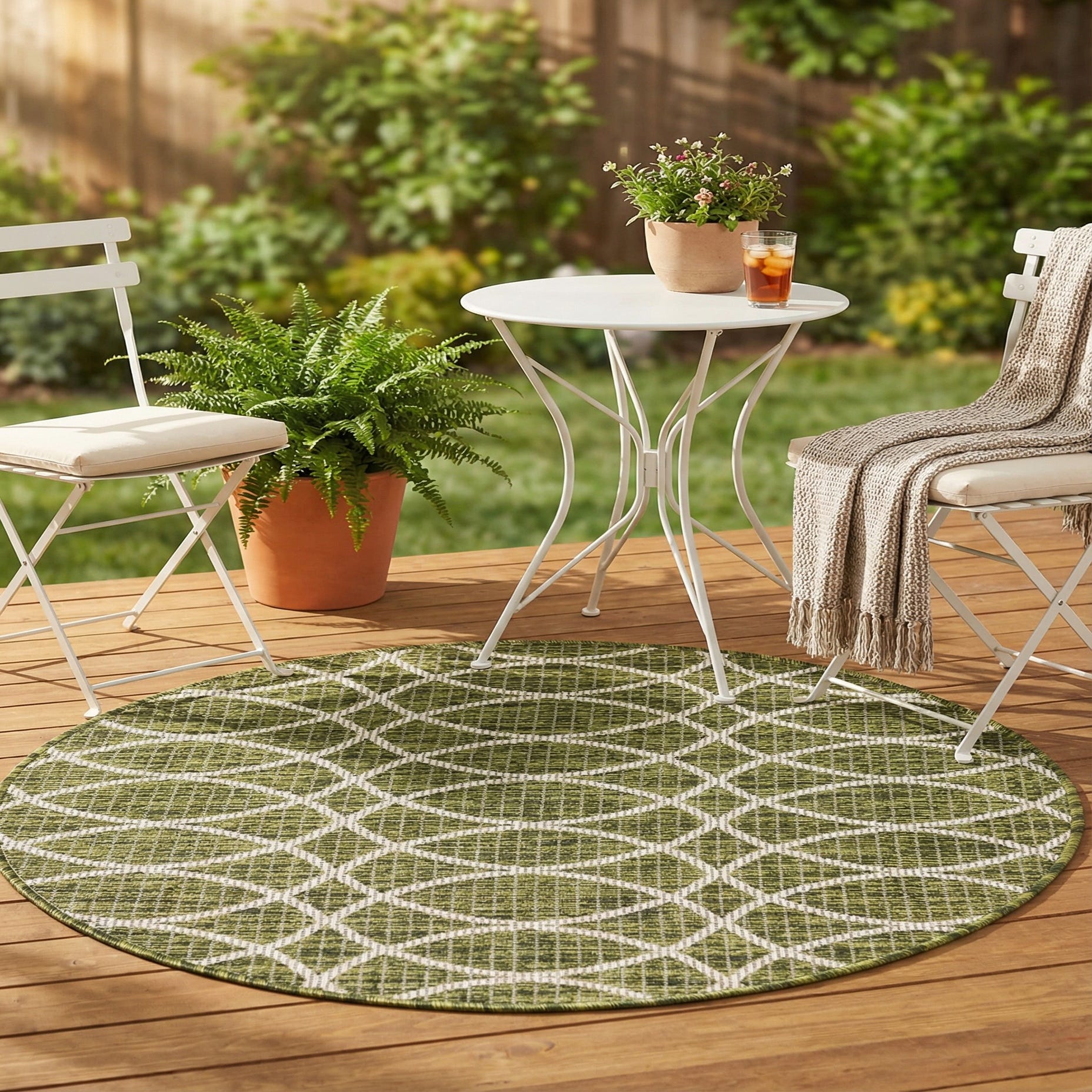 3' x 3' Washable Trellis Indoor / Outdoor Round Rug