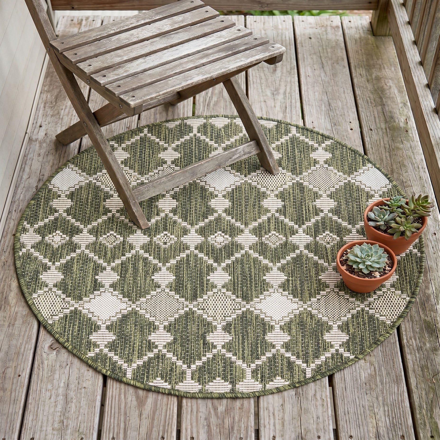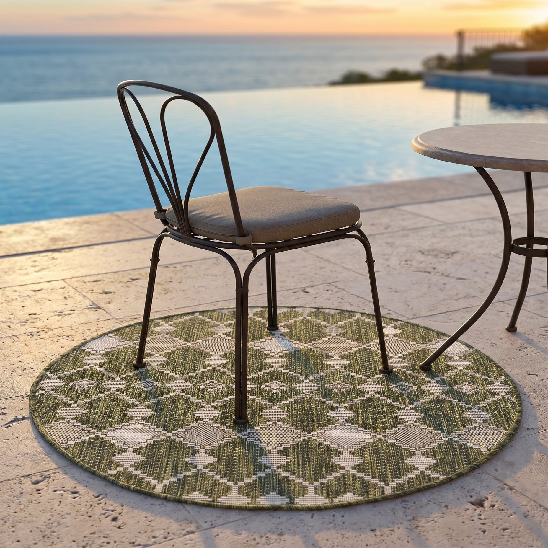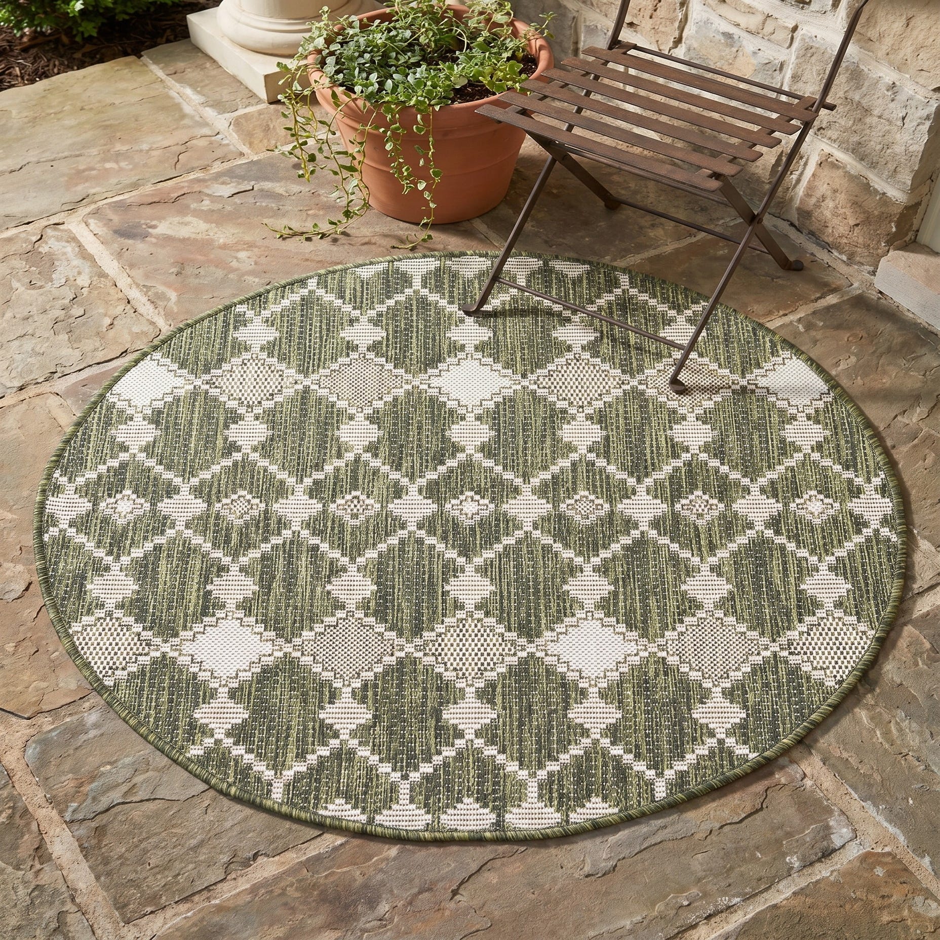 3' x 3' Easy-Clean Trellis Indoor / Outdoor Round Rug