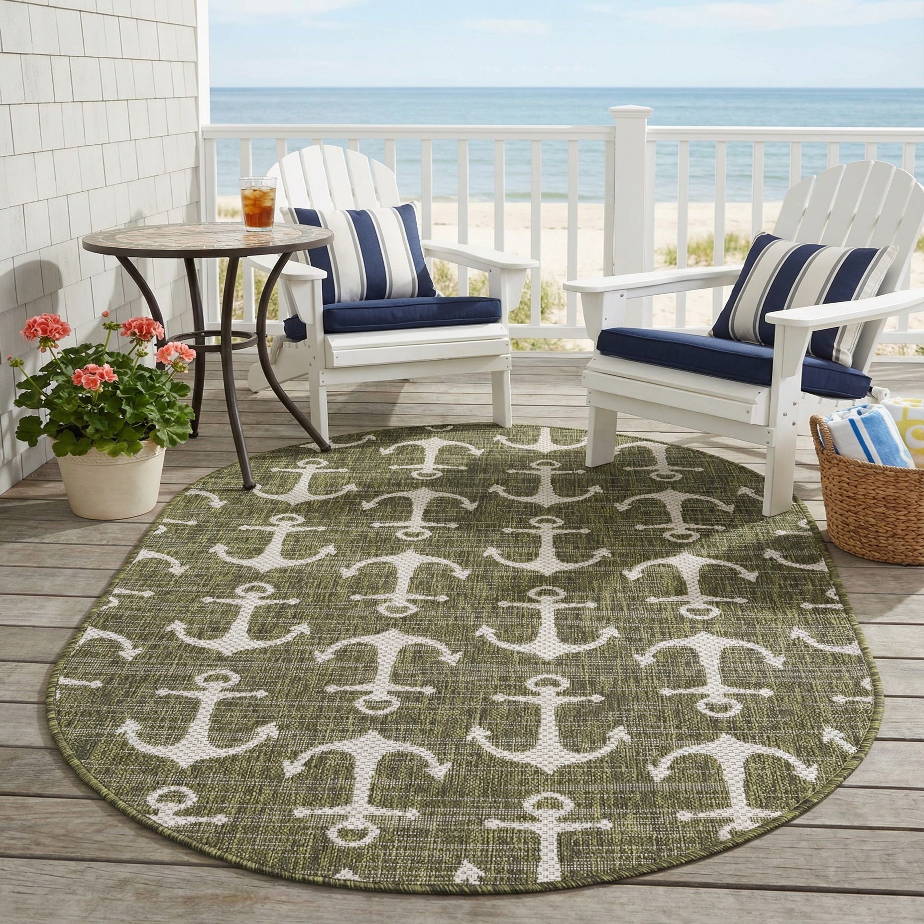3' x 5' 3 Washable Coastal Indoor / Outdoor Oval Rug