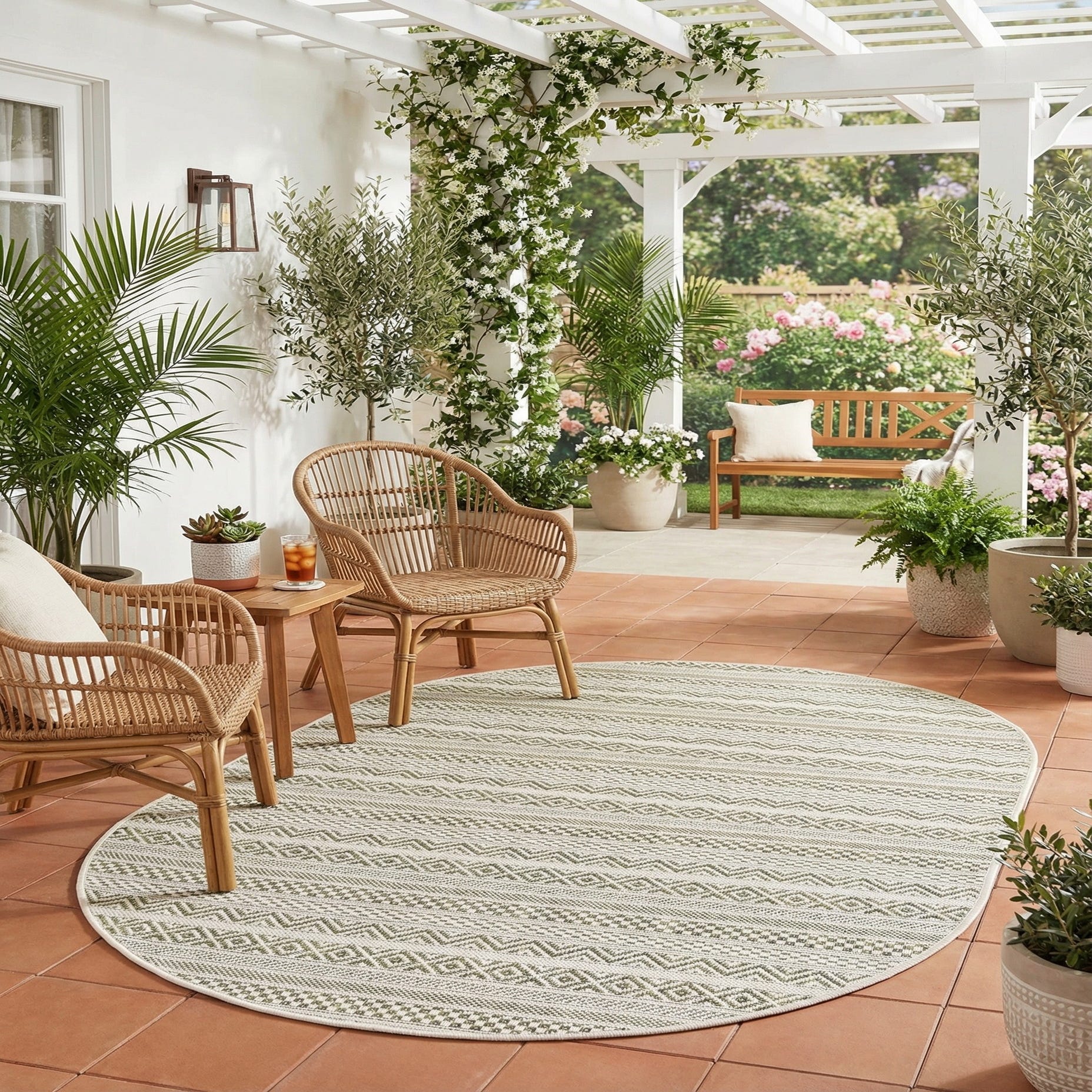 3' x 5' 3 Washable Striped Indoor / Outdoor Oval Rug