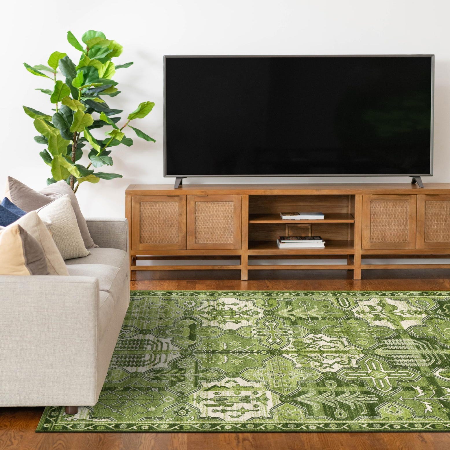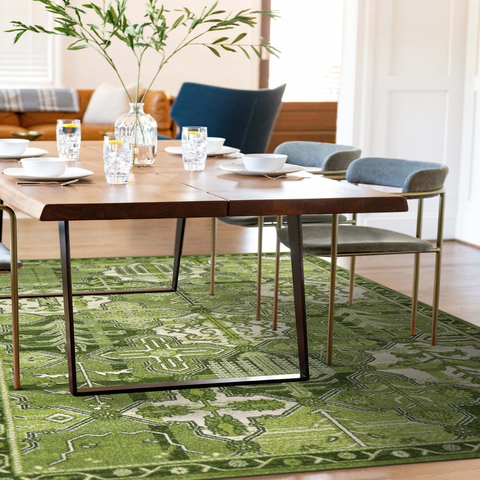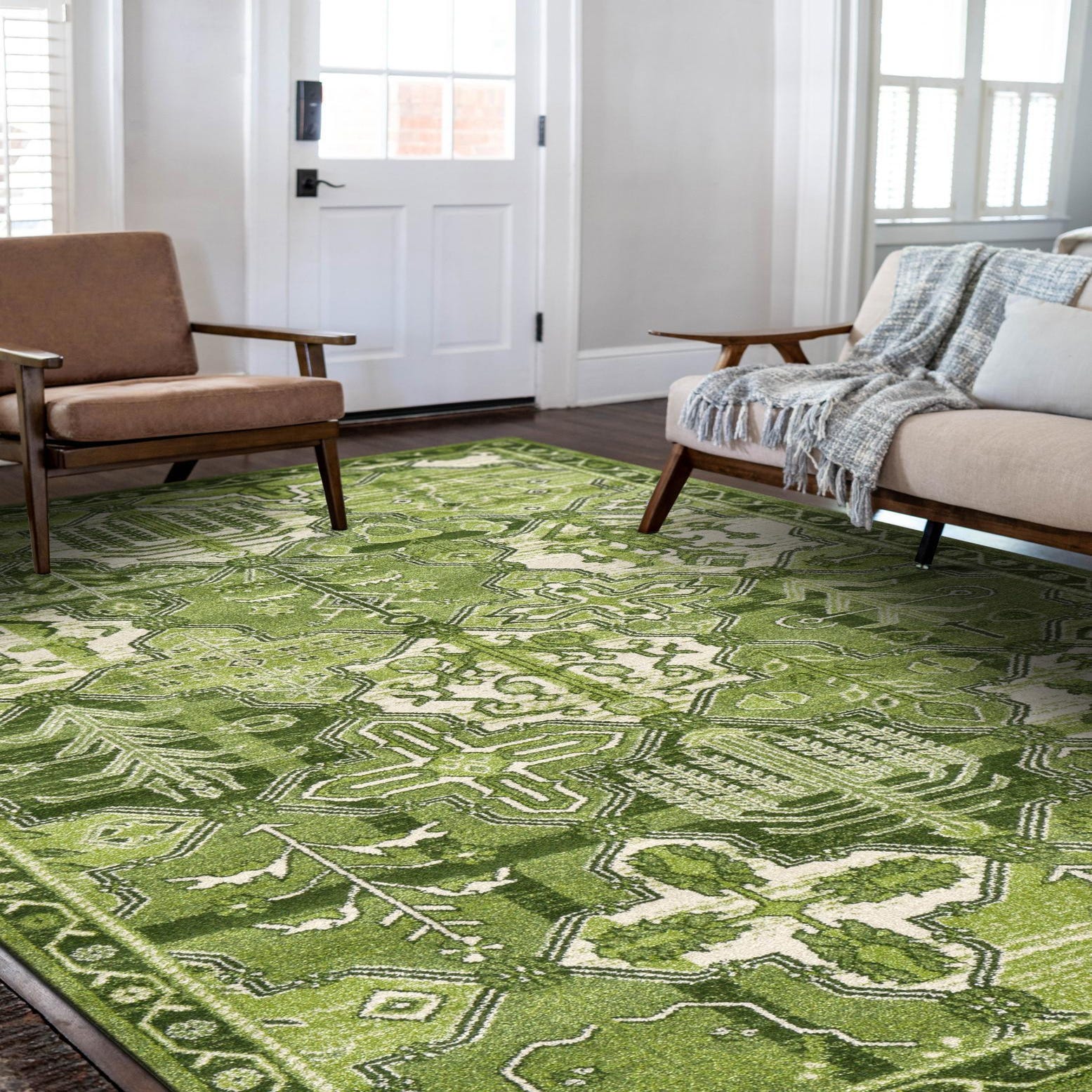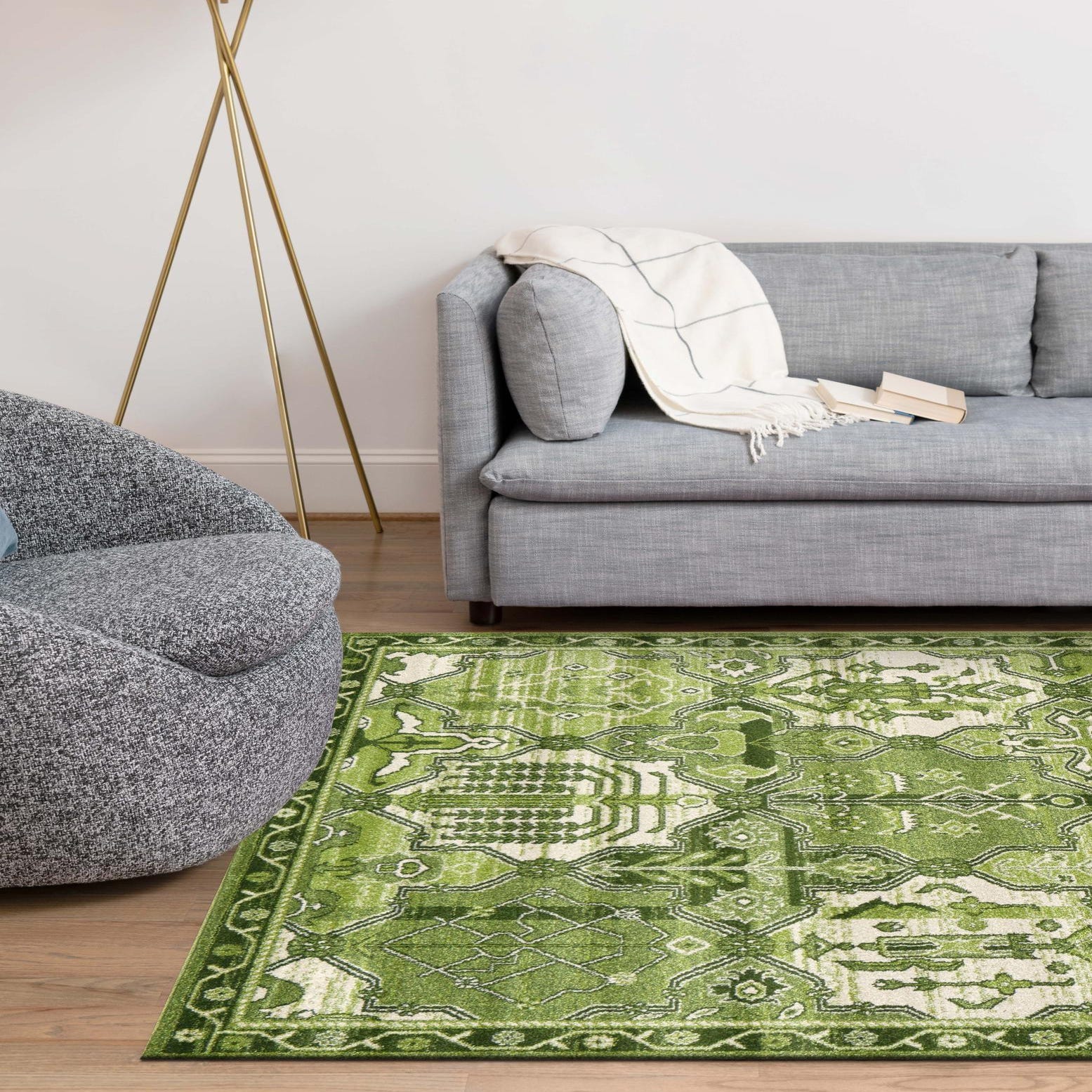 Primary color is Green. Colors in this rug include: Green, Gray, Beige, Ivory, Light Green.