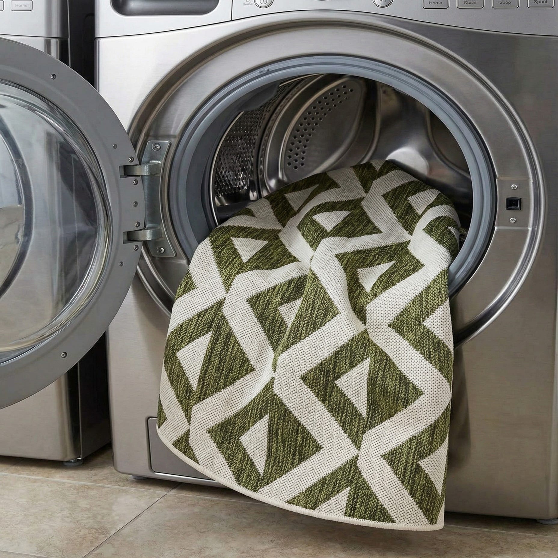 Primary color is Green. Colors in this rug include: Green, Ivory.