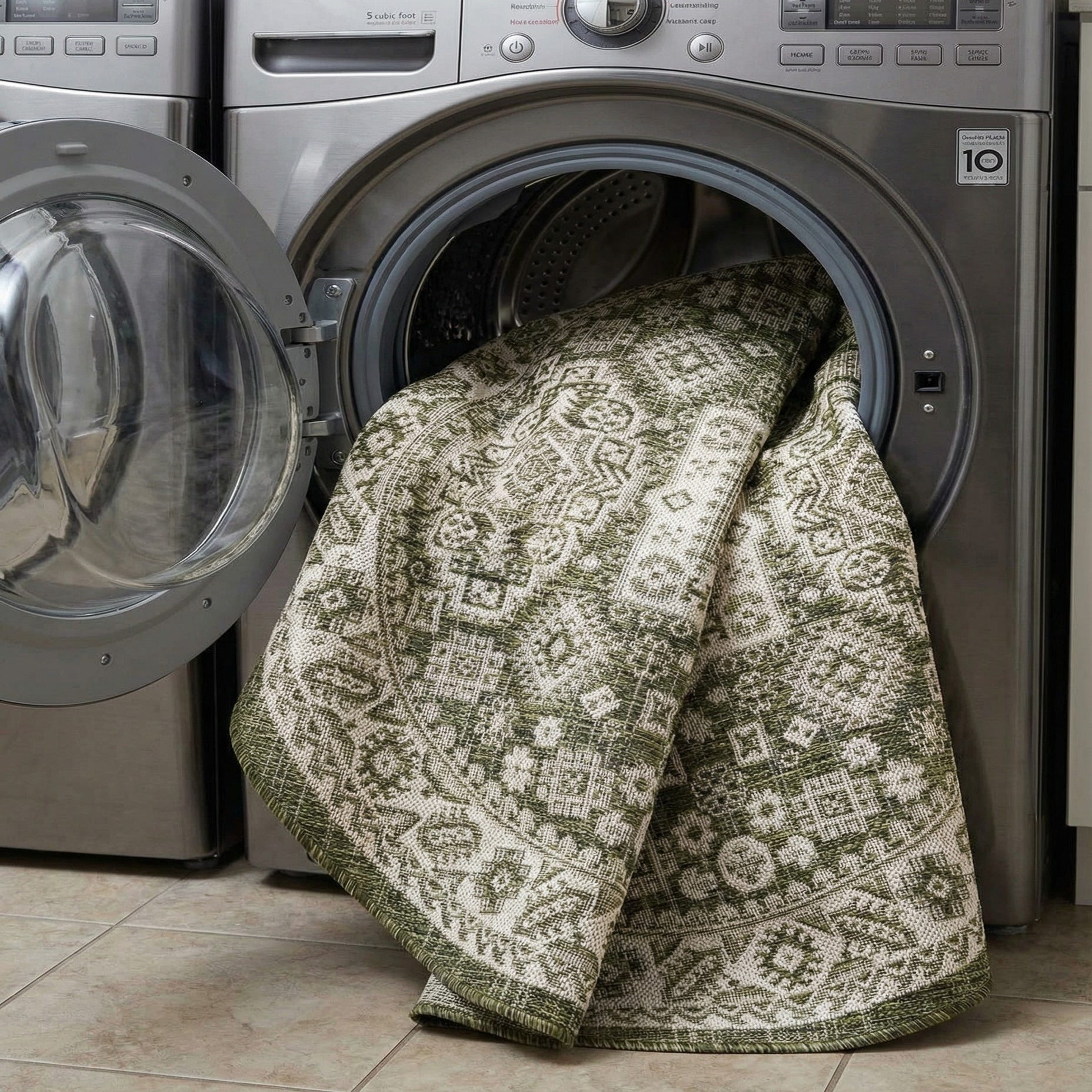 4' x 4' Washable Aztec Indoor / Outdoor Round Rug