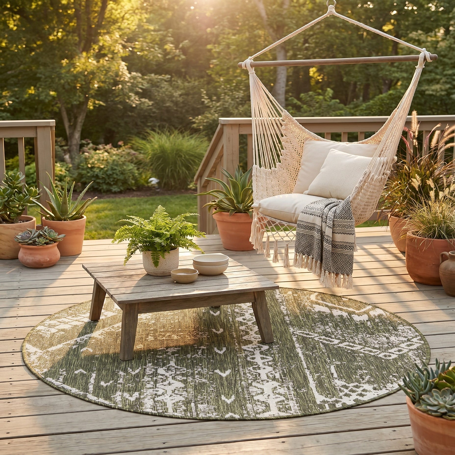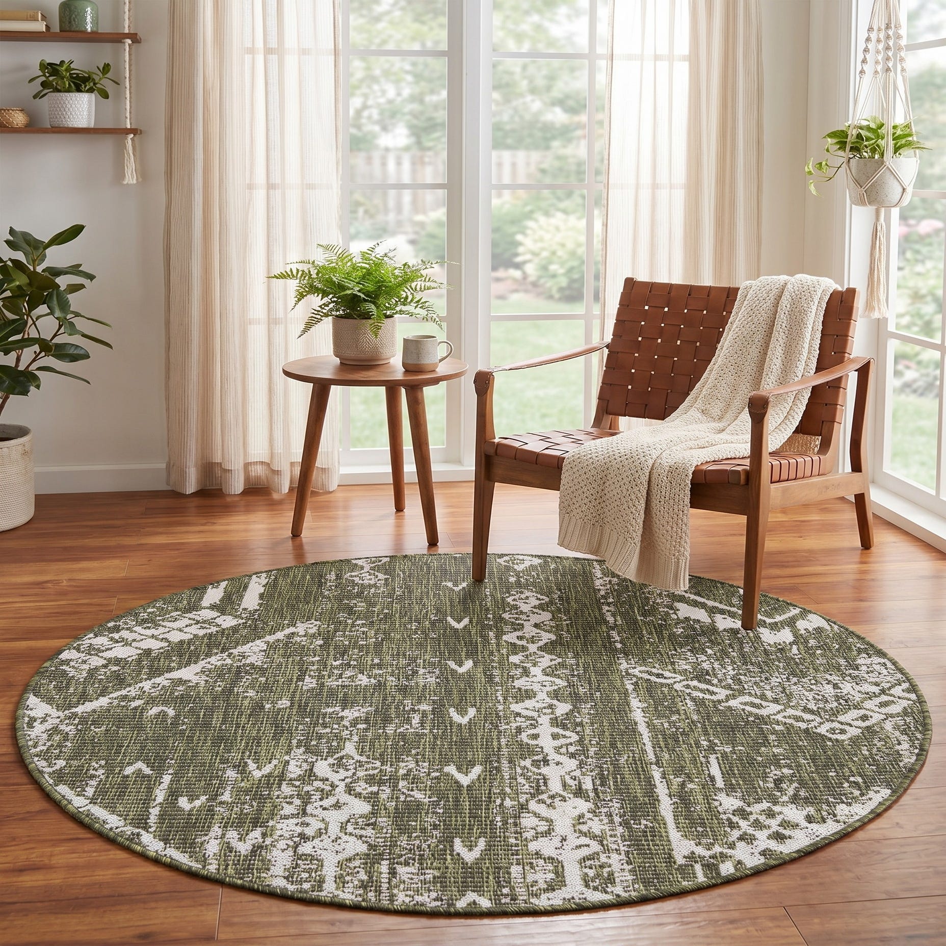 4' x 4' Easy-Clean Bohemian Indoor / Outdoor Round Rug