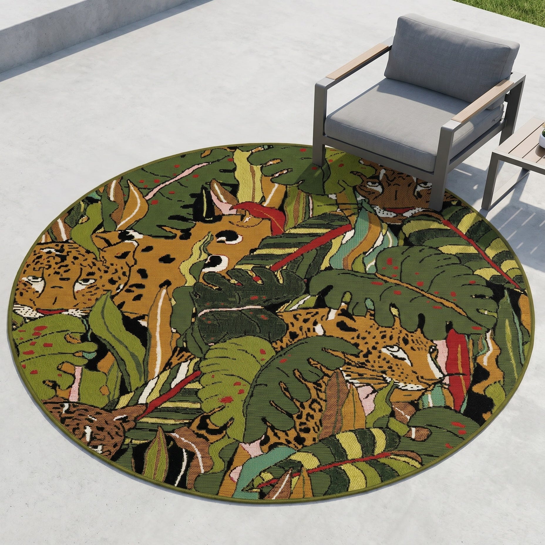 4' x 4' Easy-Clean Botanical Indoor / Outdoor Round Rug