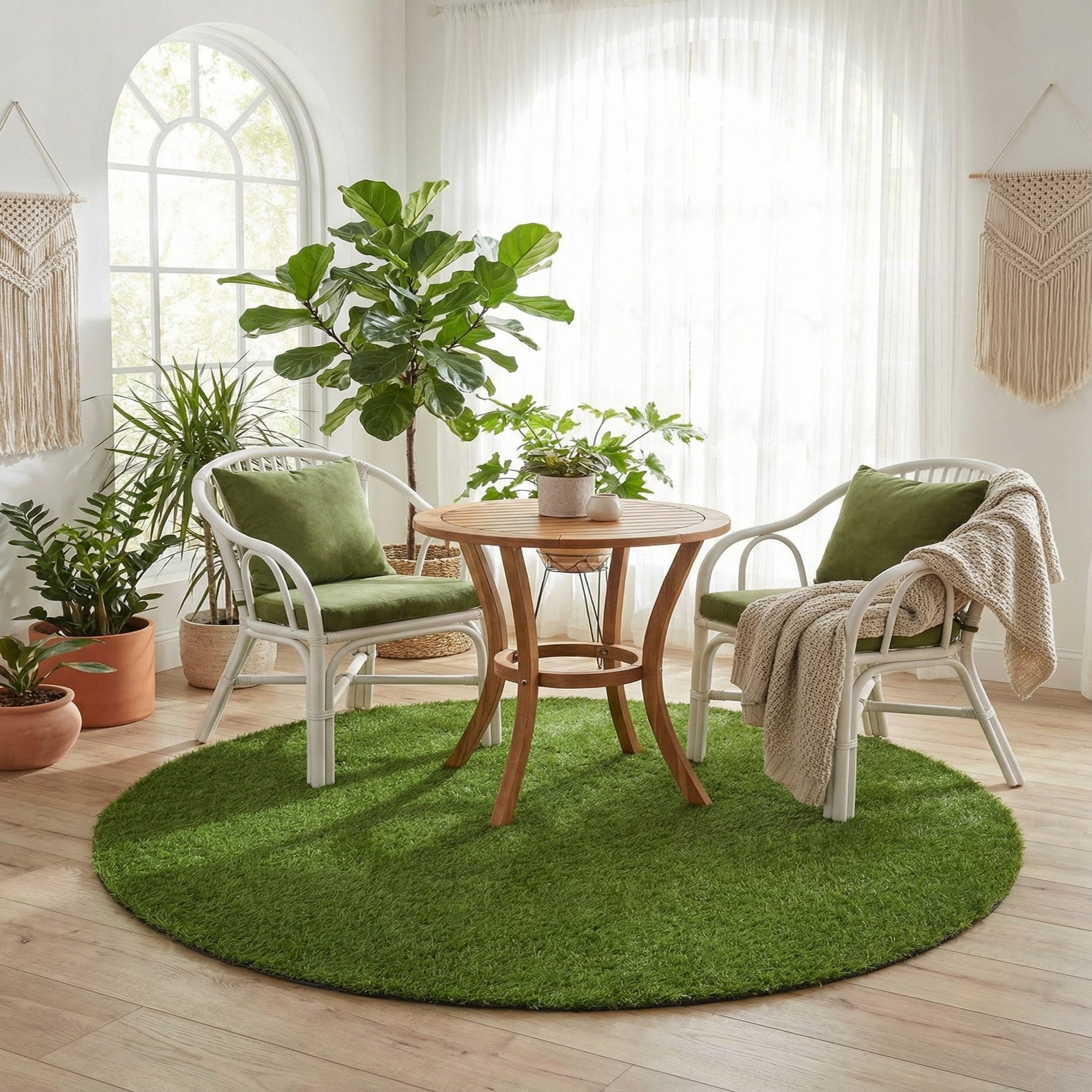 4' x 4' Washable Grass Indoor / Outdoor Round Rug