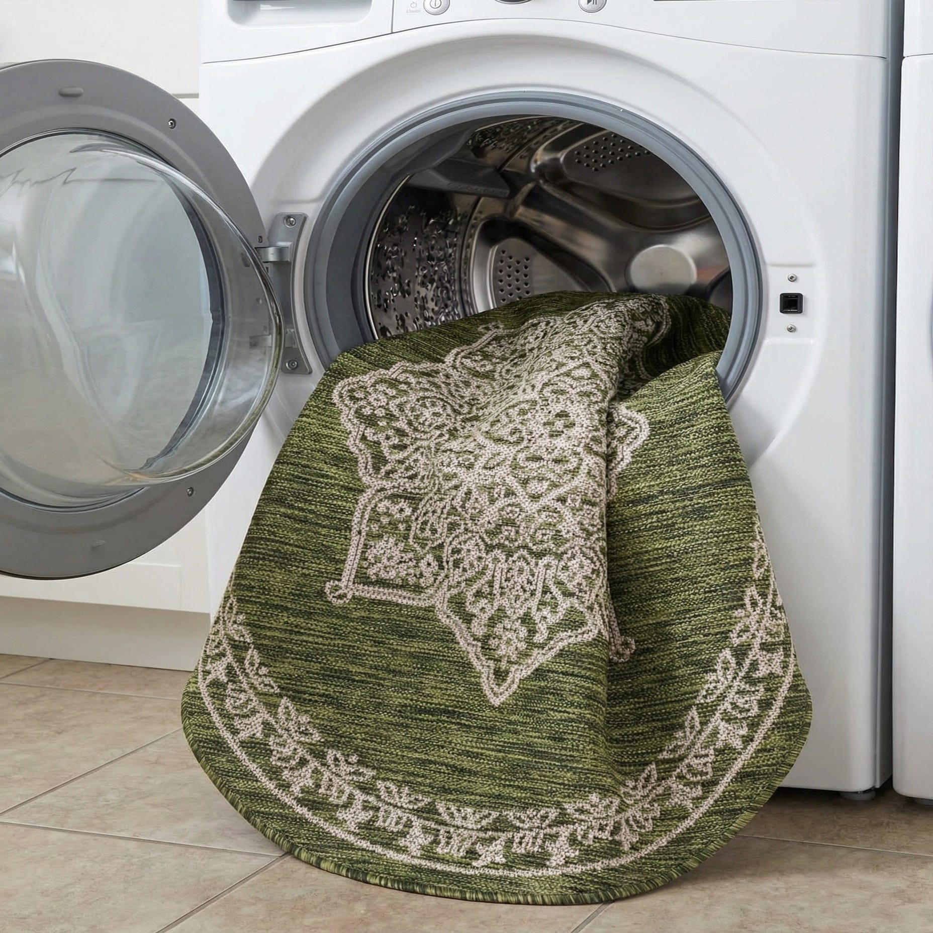 Detail image of 4' x 4'  Washable Traditional Indoor / Outdoor Round Rug