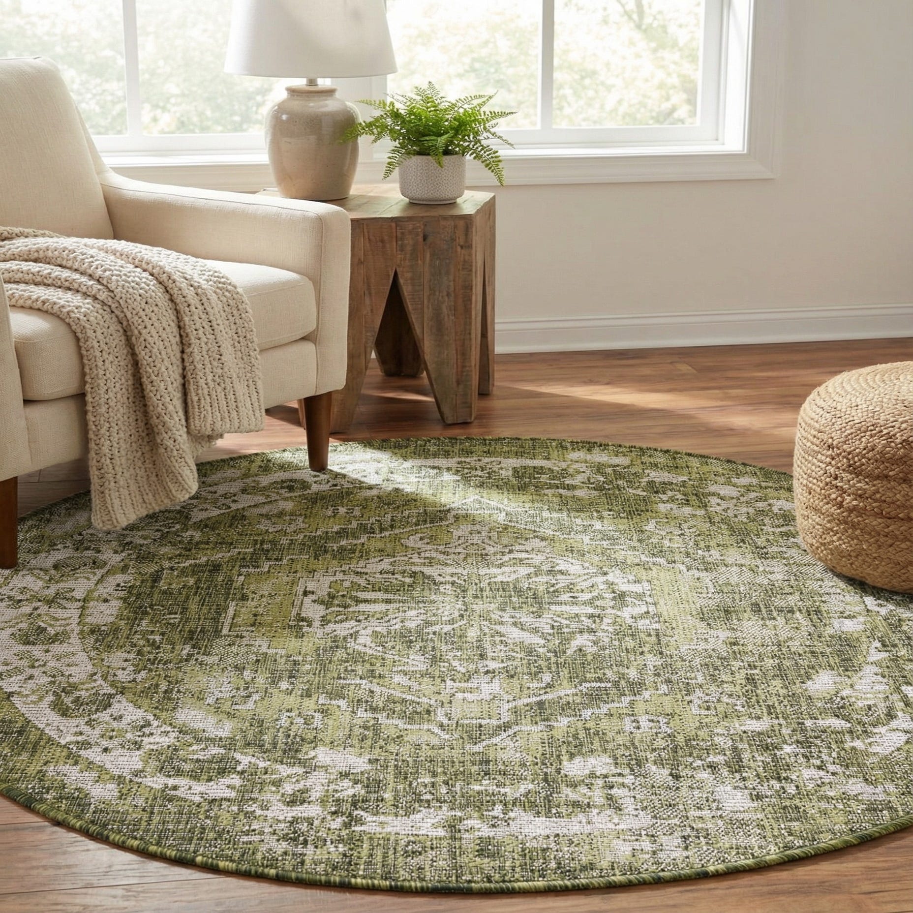 4' x 4' Washable Traditional Indoor / Outdoor Round Rug