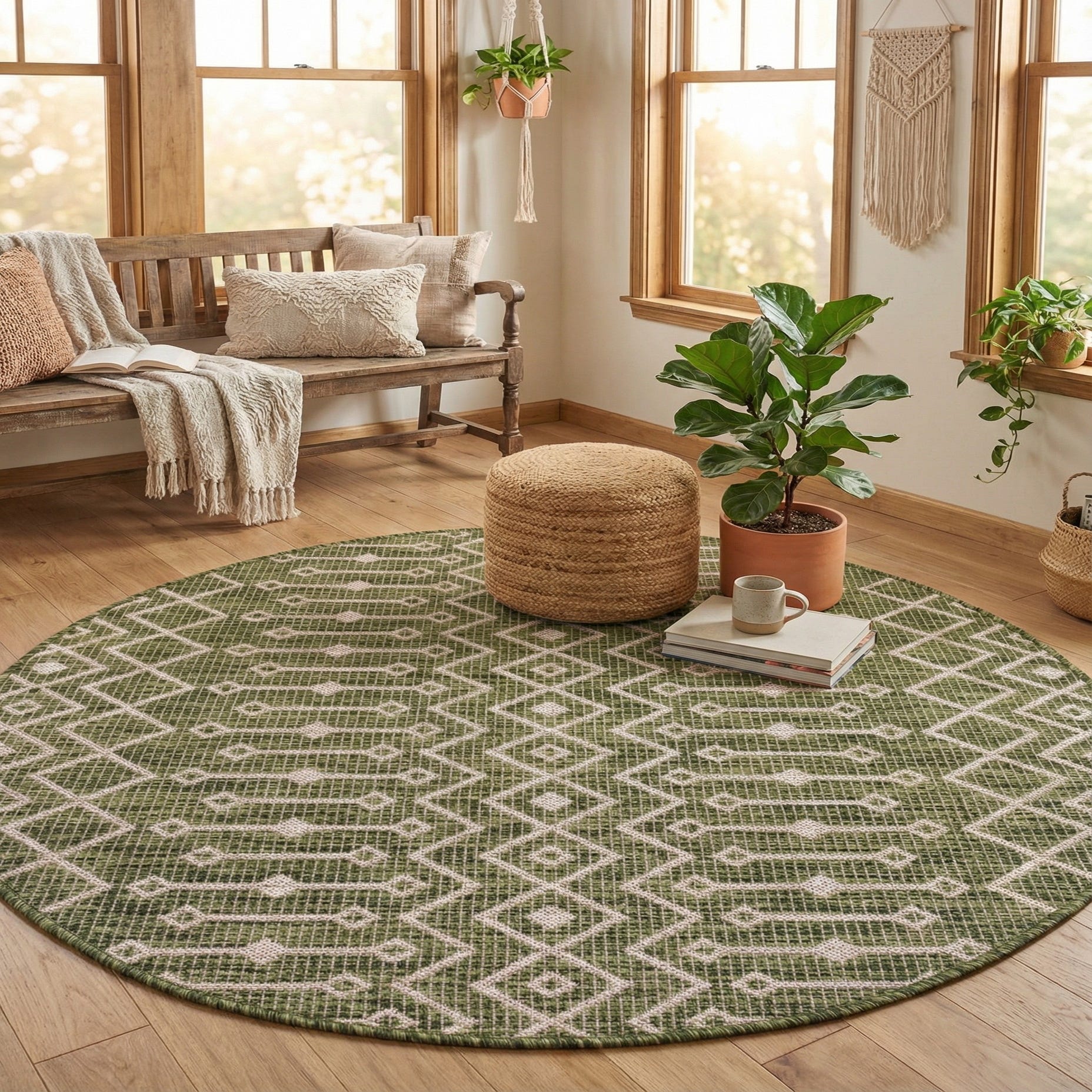 4' x 4' Washable Trellis Indoor / Outdoor Round Rug