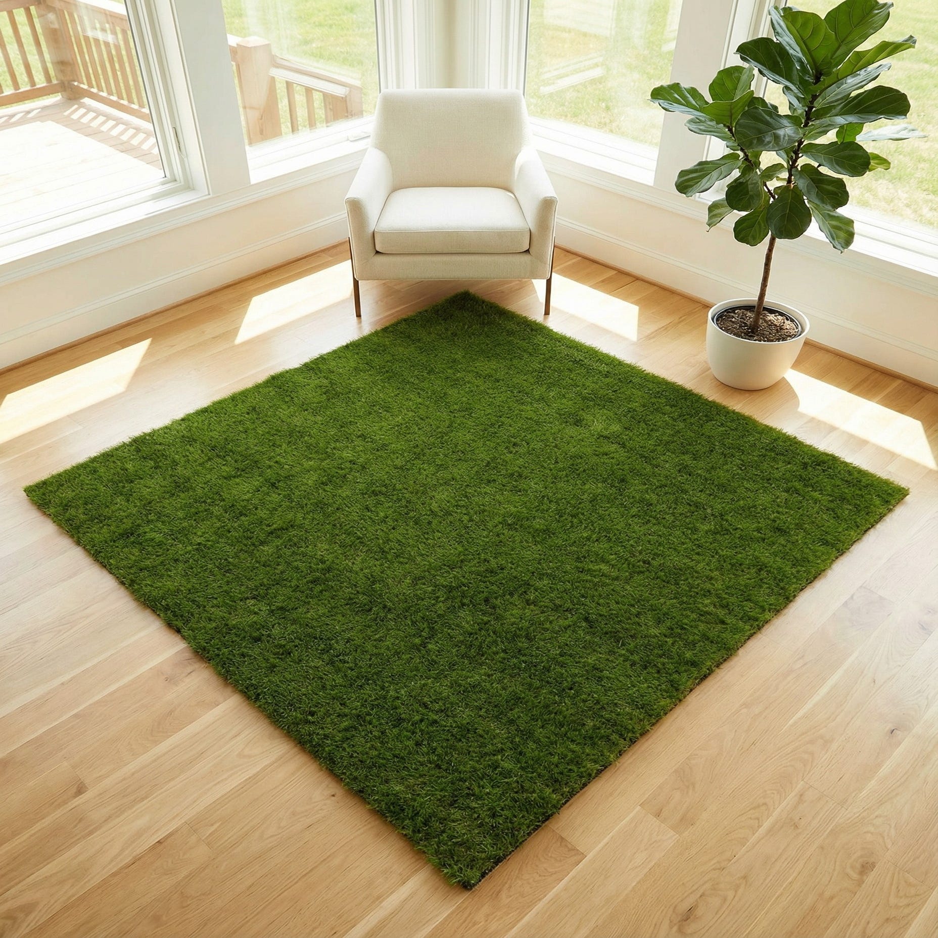 4' x 4' Washable Grass Indoor / Outdoor Square Rug