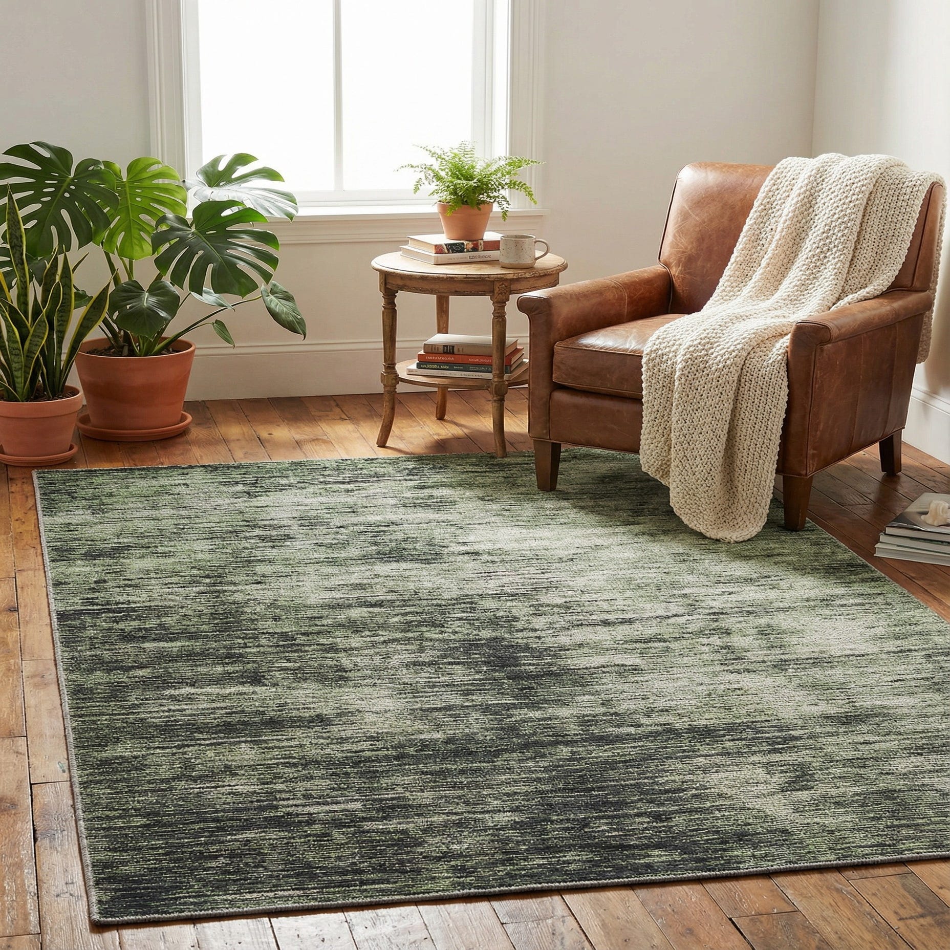Primary color is Green. Colors in this rug include: Green, Ivory.