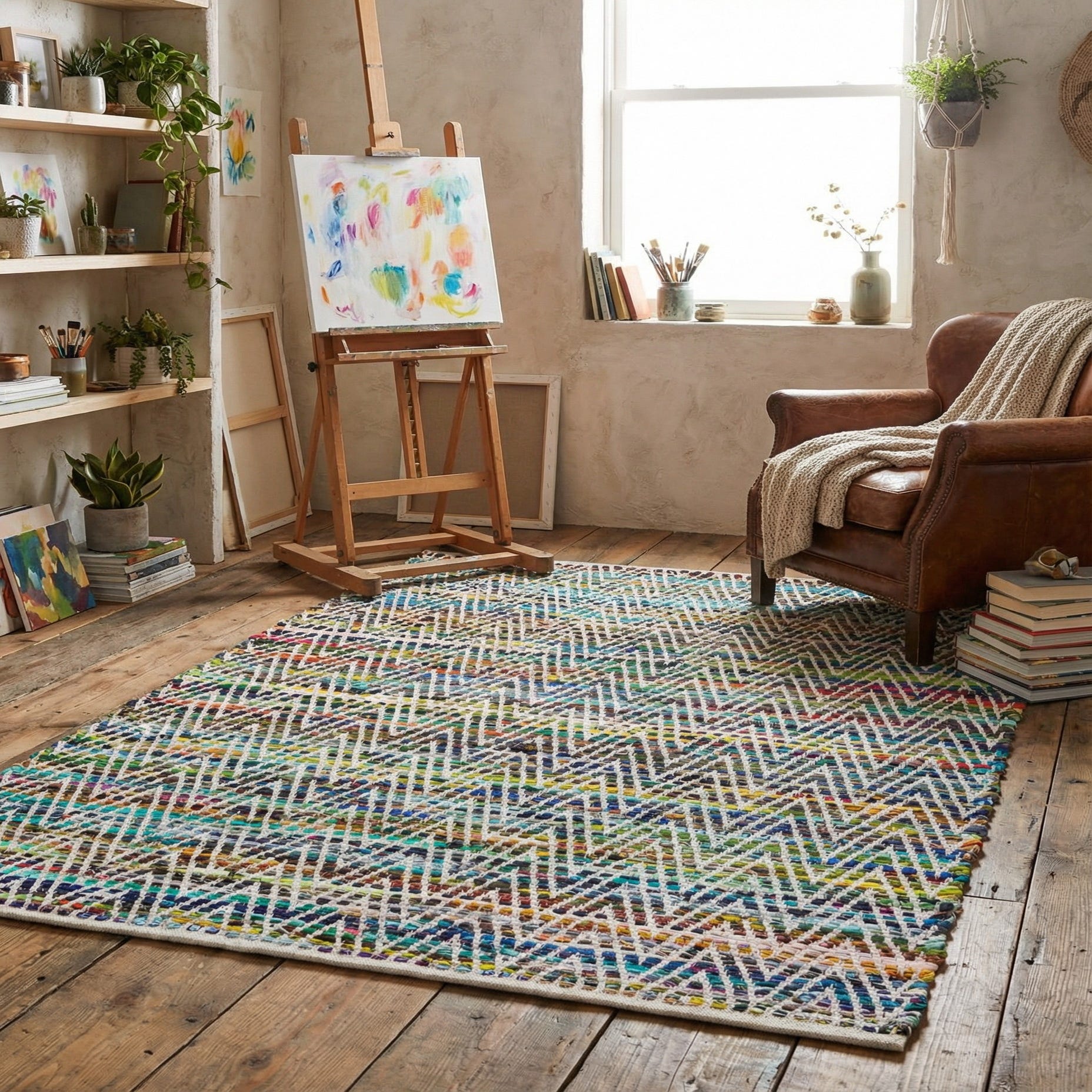 4' 1 x 6' 1 Hand Woven Chindi Chevron Rug